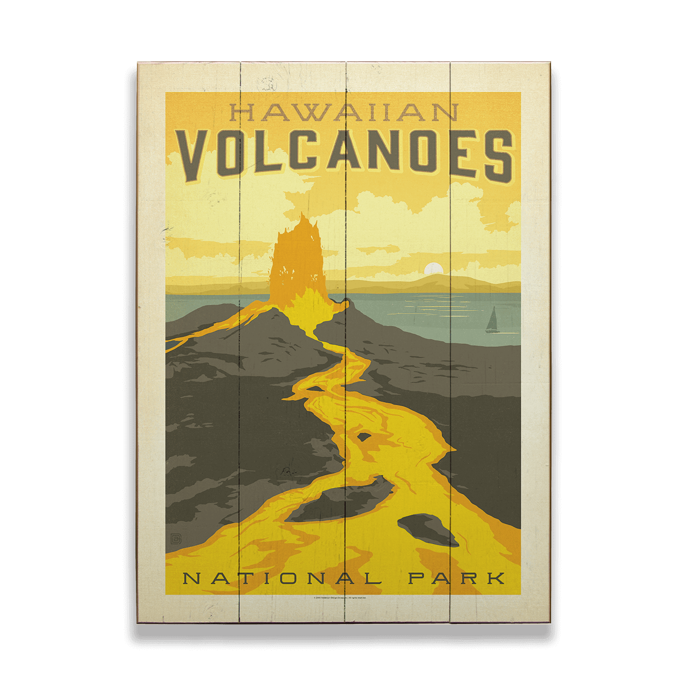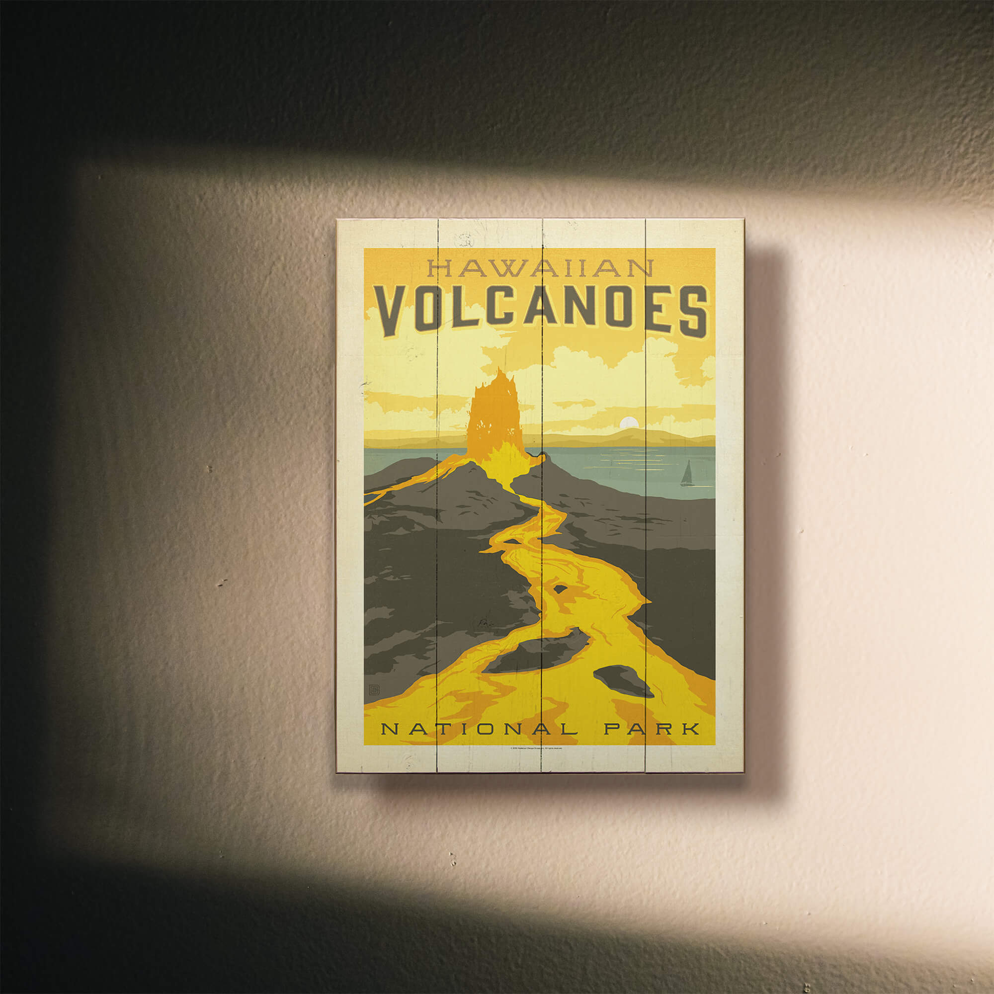 Ignite your wanderlust with this striking vintage-inspired artwork of Hawaii Volcanoes National Park. Emblazoned with vibrant hues of a molten lava flow and the tranquil tones of a tropical sunset, this piece artfully captures the dynamic beauty of Hawaii's volcanic landscapes. Ideal for those who love unique travel decor, this print invites the spirit of adventure into your home, celebrating the fiery heart of the Pacific islands. Add a touch of Hawaiian heat to your wall art collection with this iconic depiction of nature's power.