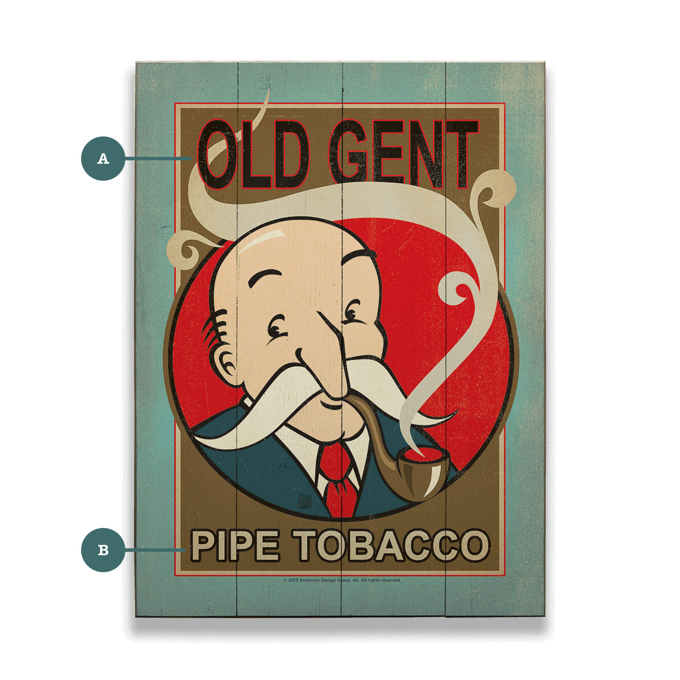 Step back in time with this charmingly nostalgic print, "Old Gent Pipe Tobacco." Celebrating the bygone era of distinguished smoking lounges and refined tastes, the artwork features a whimsical caricature of an elderly gentleman enjoying a leisurely smoke. The classic design and vintage color palette evoke the timeless appeal of traditional pipe tobacco and the sophistication it symbolized. This piece is a perfect collectible for vintage art aficionados or a stylish decorative element for spaces with a retro flair.