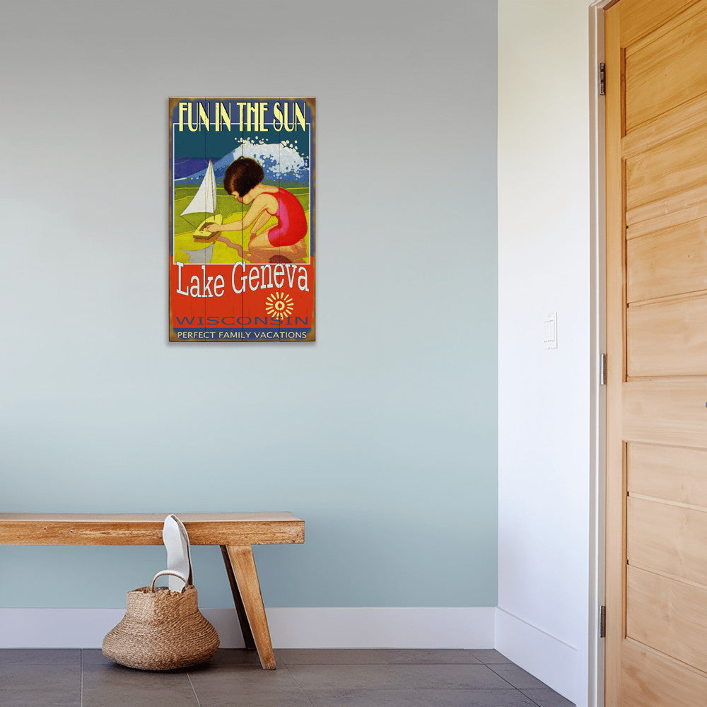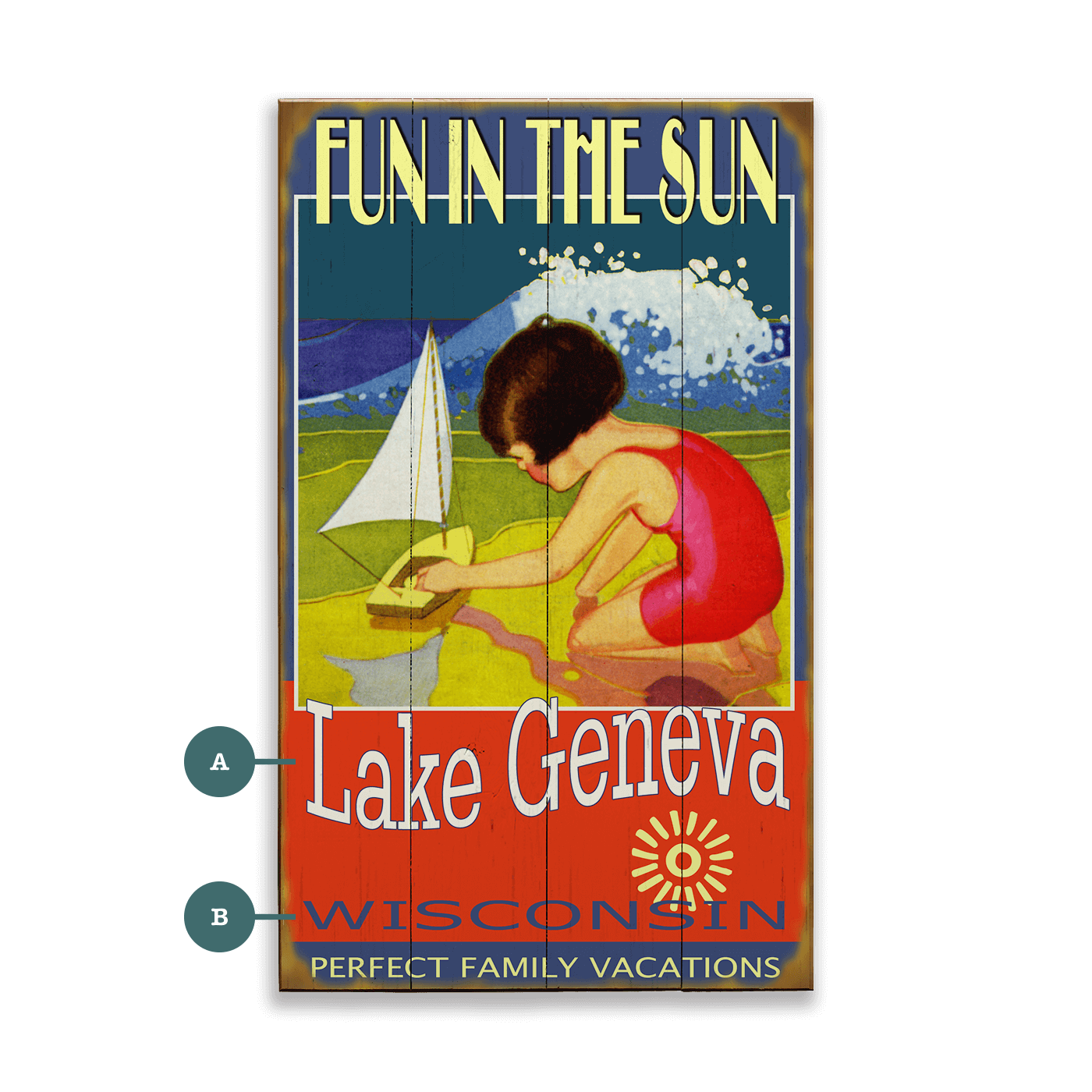 Bring the spirit of summer to life with this cheerful and nostalgic artwork, showcasing a young girl in a bright red swimsuit playing with a toy sailboat along the water’s edge. Surrounded by vivid colors and a whimsical splash of waves in the background, the scene captures the joy of simple moments and sun-soaked days. With its playful energy and retro charm, this piece makes a delightful addition to any family cabin, lakeside retreat, or vacation home. A tribute to imagination, sunshine, and carefree afternoons, it’s a reminder of just how sweet summer can be.