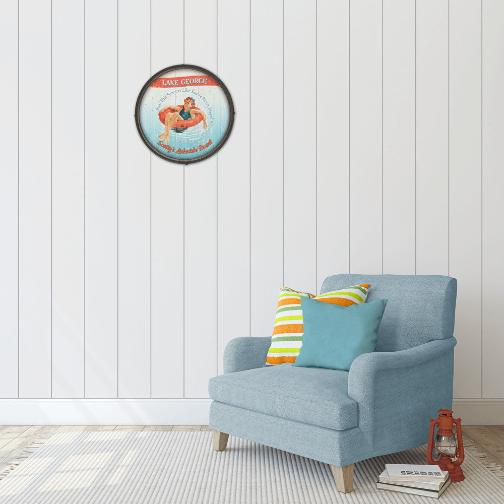 Add a splash of vintage summer charm to your decor with this playful lakeside sign, perfect for evoking carefree days spent on the water. Featuring a retro illustration of a smiling girl floating in a bright red inner tube, this piece captures the essence of youthful adventure and lakeside relaxation. The weathered finish and nostalgic typography give it an authentic, timeworn feel—ideal for cabins, beach houses, or family getaways. With its cheerful reminder to “Play This Summer Like You’ve Never Played Before... and Rest,” this sign invites you to soak up the sun, make memories, and unwind in true summer style.