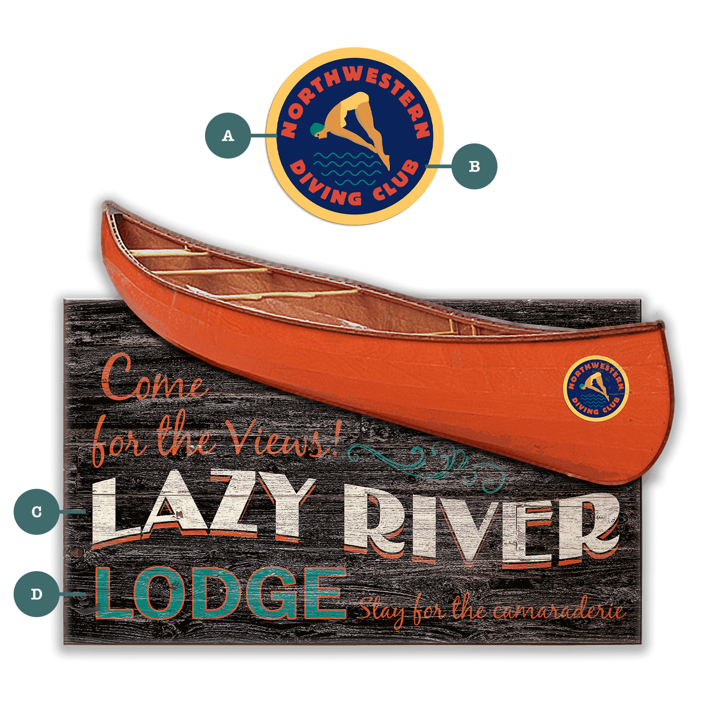 Invite the spirit of riverside relaxation into your space with this charming lake-inspired artwork. Featuring a striking three-dimensional canoe and weathered typography, this piece captures the essence of leisurely days spent on the water. The rich woodgrain background and vibrant lettering create a warm, welcoming feel, making it a perfect addition to any cabin, lodge, or lake house. With a customizable emblem, this sign can be tailored to reflect your unique connection to the water—whether it’s paddling, fishing, or simply unwinding with friends. A true celebration of scenic views and lasting camaraderie.