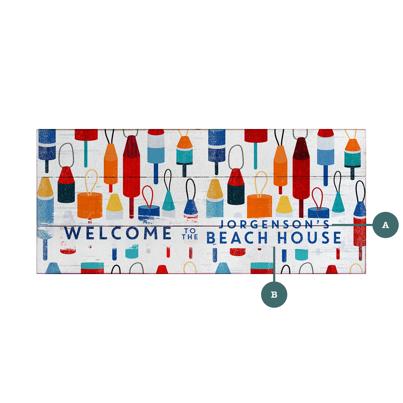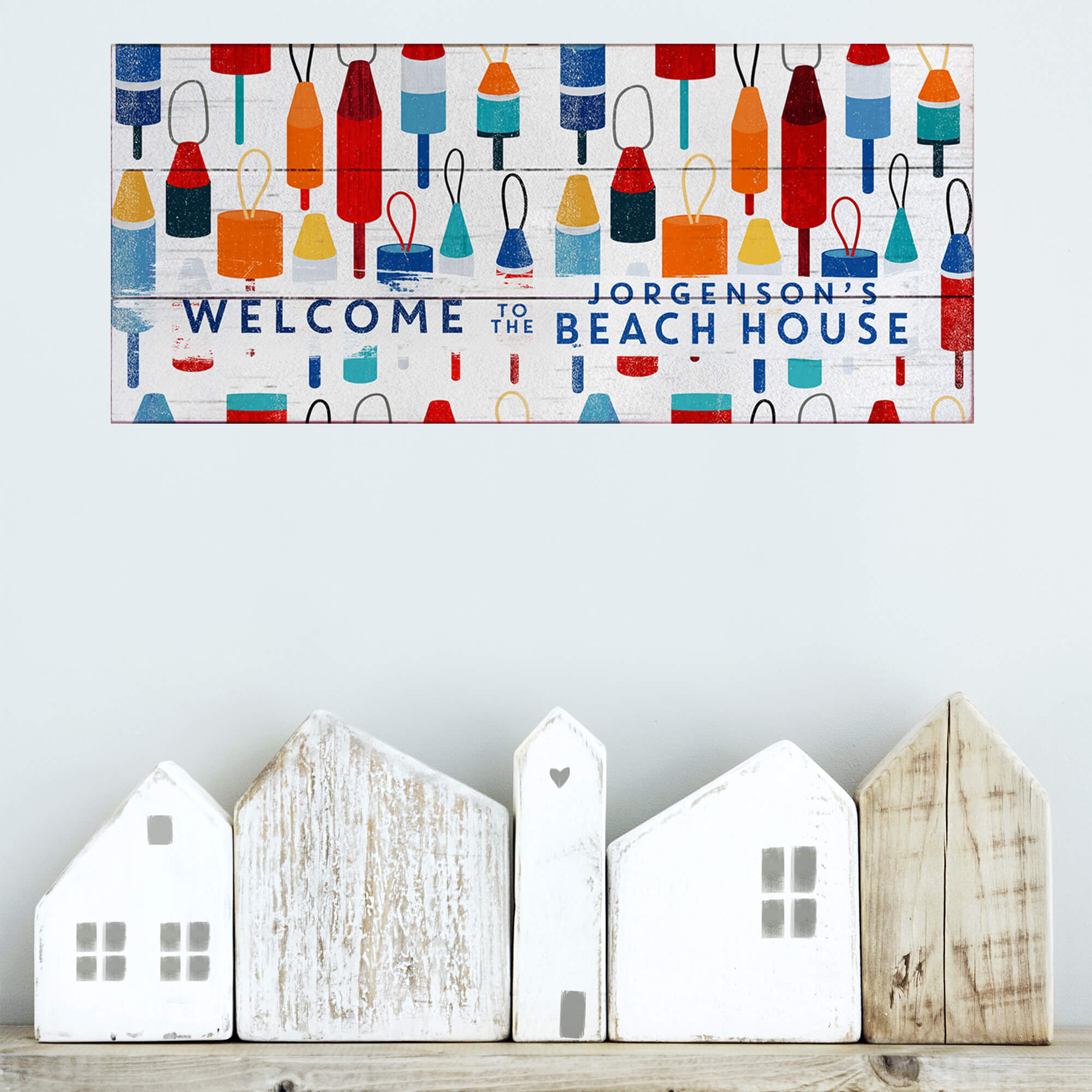 Beach House Buoy Welcome: Personalized - Wood & Metal Wall Art
