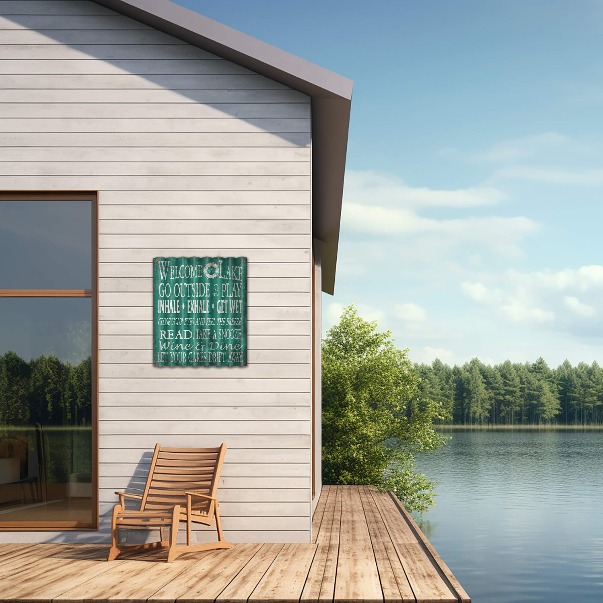 Welcome to the Lake: Green Generic - Corrugated Metal Wall Art