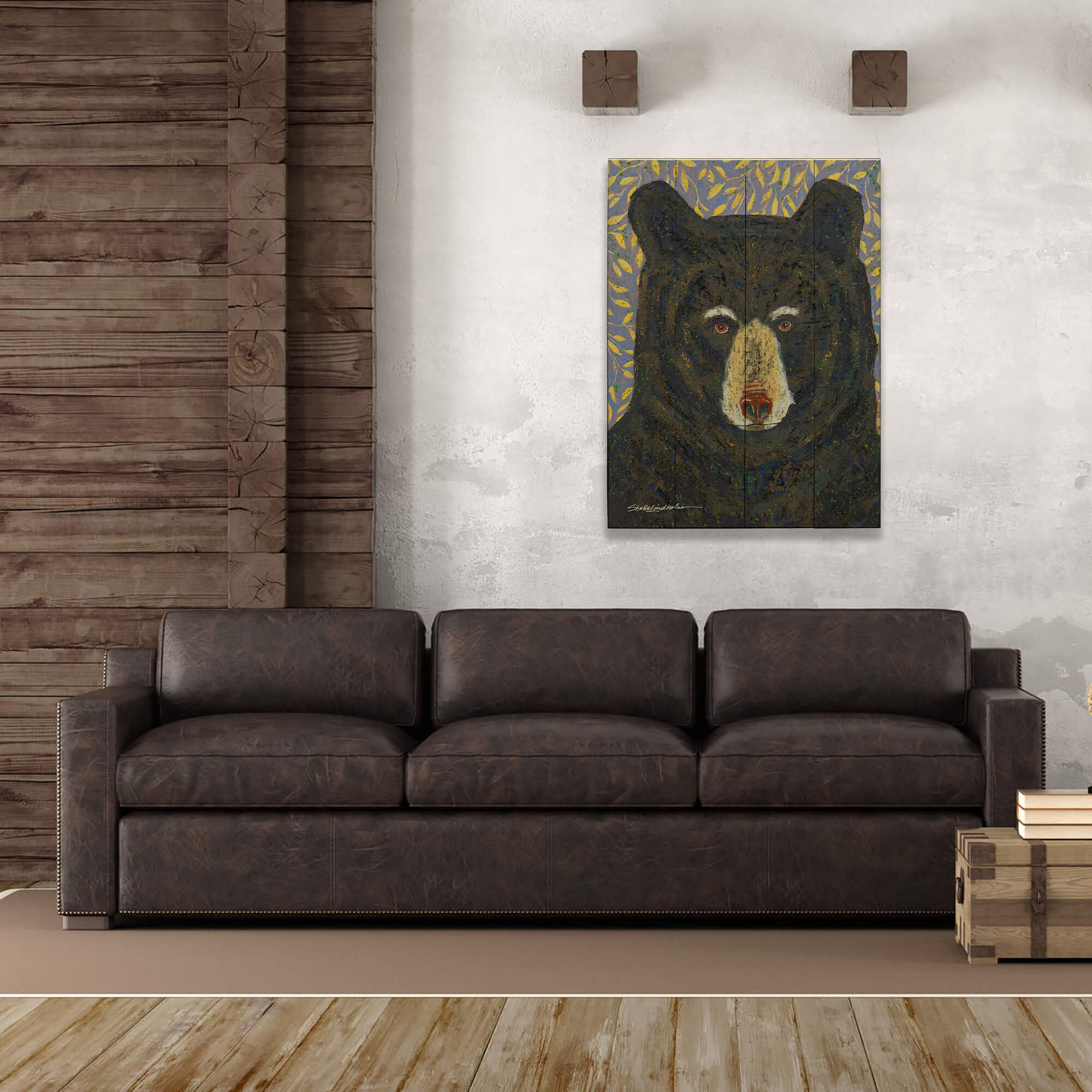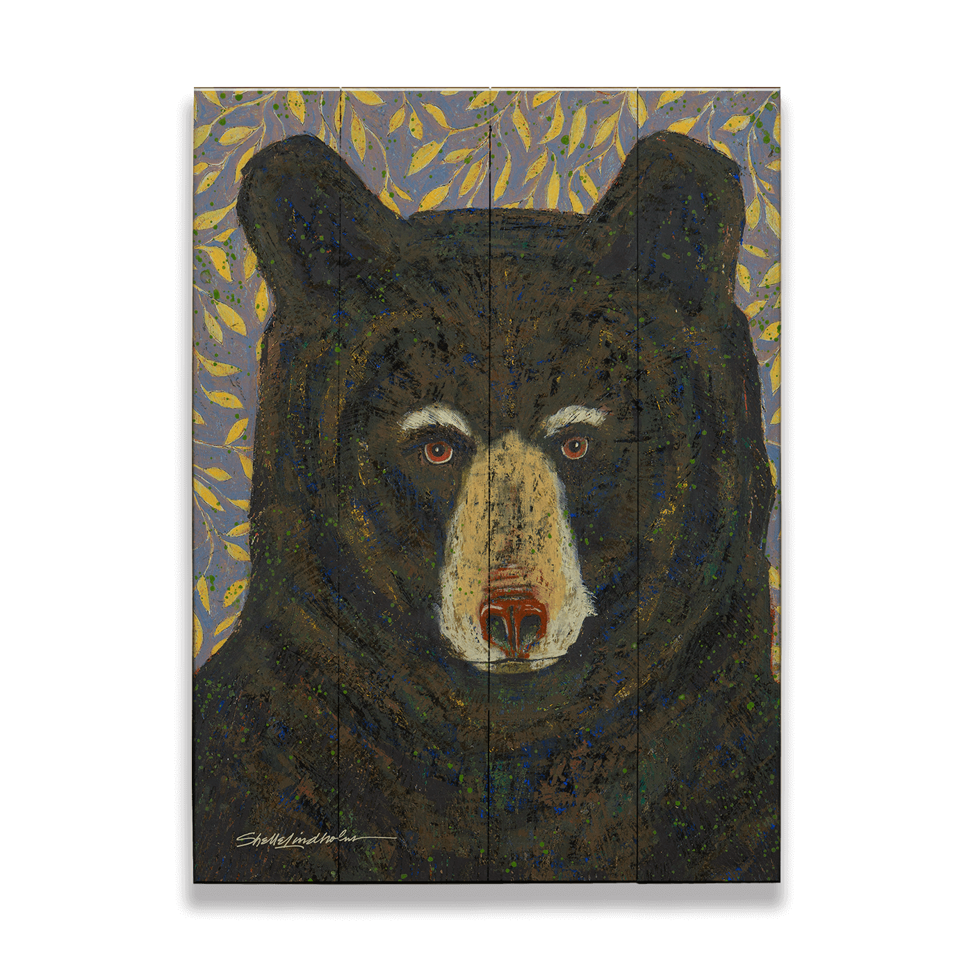 This captivating bear portrait artwork showcases a bold, expressive depiction of a bear with a striking gaze, surrounded by a colorful background of leaves. The rich texture and vibrant style bring both power and serenity to the piece, making it a perfect addition for wildlife enthusiasts, bear lovers, and art lovers alike. Whether for rustic or modern décor, this nature-inspired artwork serves as a stunning focal point, offering a unique blend of creativity and natural beauty.