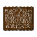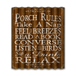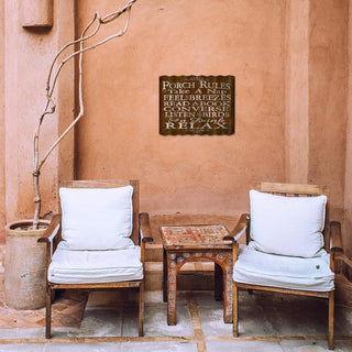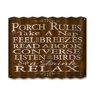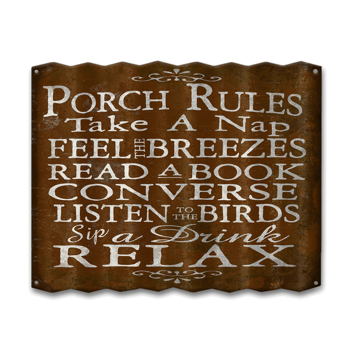 Capturing the essence of slow living, this piece is a charming tribute to porch life and the simple pleasures it brings. Set against a rustic, corrugated metal background, the bold lettering lists the essential "Porch Rules"—nap in the afternoon, feel the breeze, enjoy good conversation, and listen to the birds. Aged details give it a weathered, timeworn look, making it a perfect fit for farmhouse porches, cozy patios, or any space that embraces relaxation and unwinding. This artwork serves as a daily reminder to take a break, sip a drink, and savor the peaceful moments that make a house feel like home.
