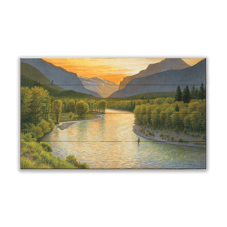 • Elk and Trout at Dawn - Wood Plank Wall Art