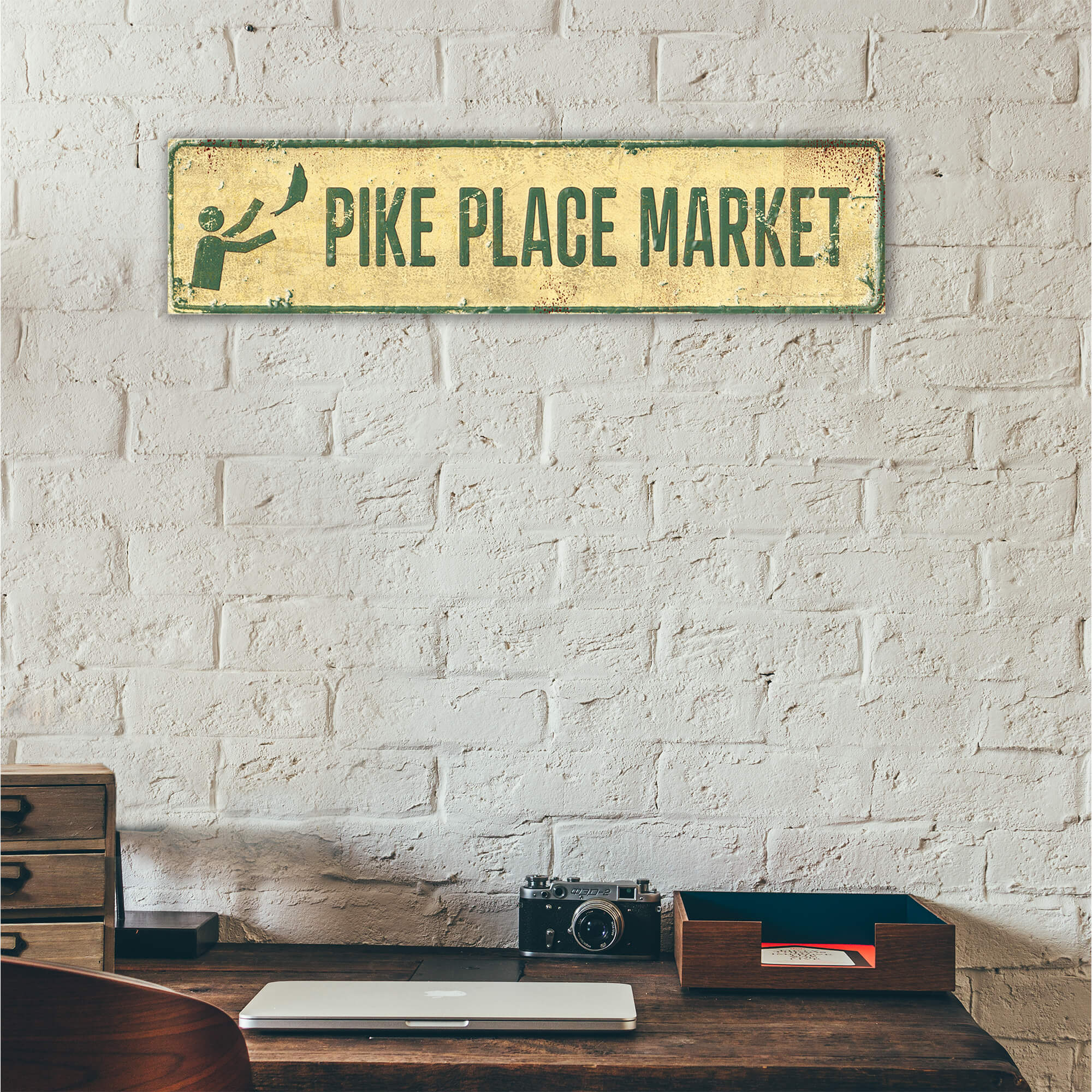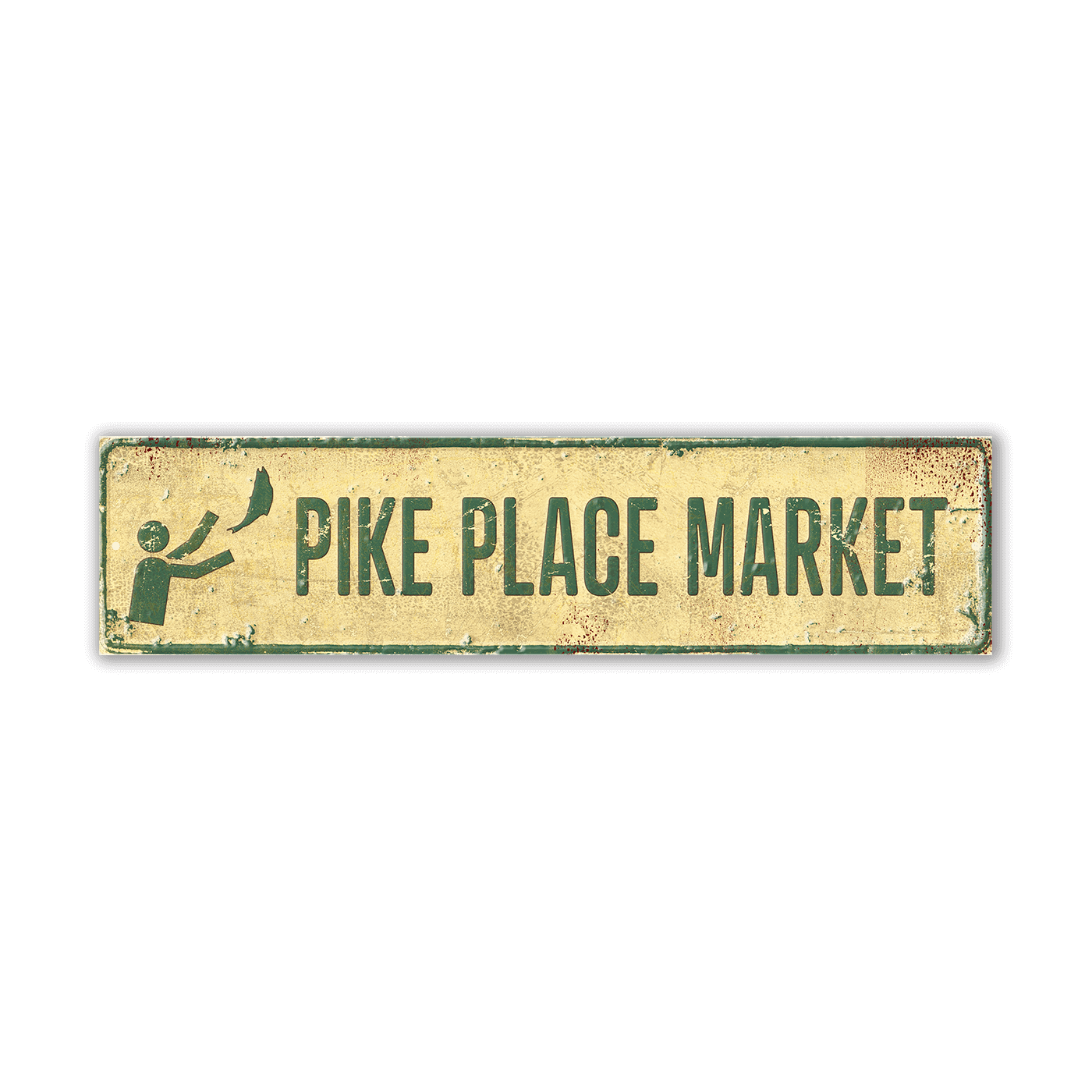 Celebrate one of Seattle’s most iconic landmarks with this vintage-inspired Pike Place Market sign, featuring a playful fish-tossing icon that nods to the market’s world-famous fishmongers. Established in 1907, Pike Place Market is one of the oldest continuously operating public markets in the United States, known for its bustling stalls of fresh seafood, produce, flowers, crafts, and local goods. Beyond the flying fish, visitors love its historic architecture, eclectic shops, street performers, and the original Starbucks store. Perfect for kitchens, restaurants, or any space that cherishes local flavor and Seattle’s lively spirit, this sign captures the authentic charm and tradition of the city’s beloved marketplace.