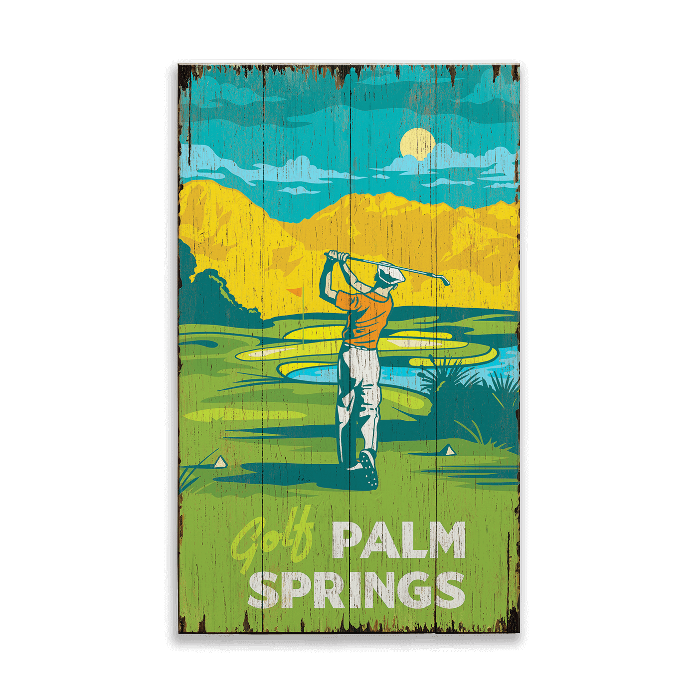 Palm Springs Golf: Distressed Finish - Wood & Metal Wall Art