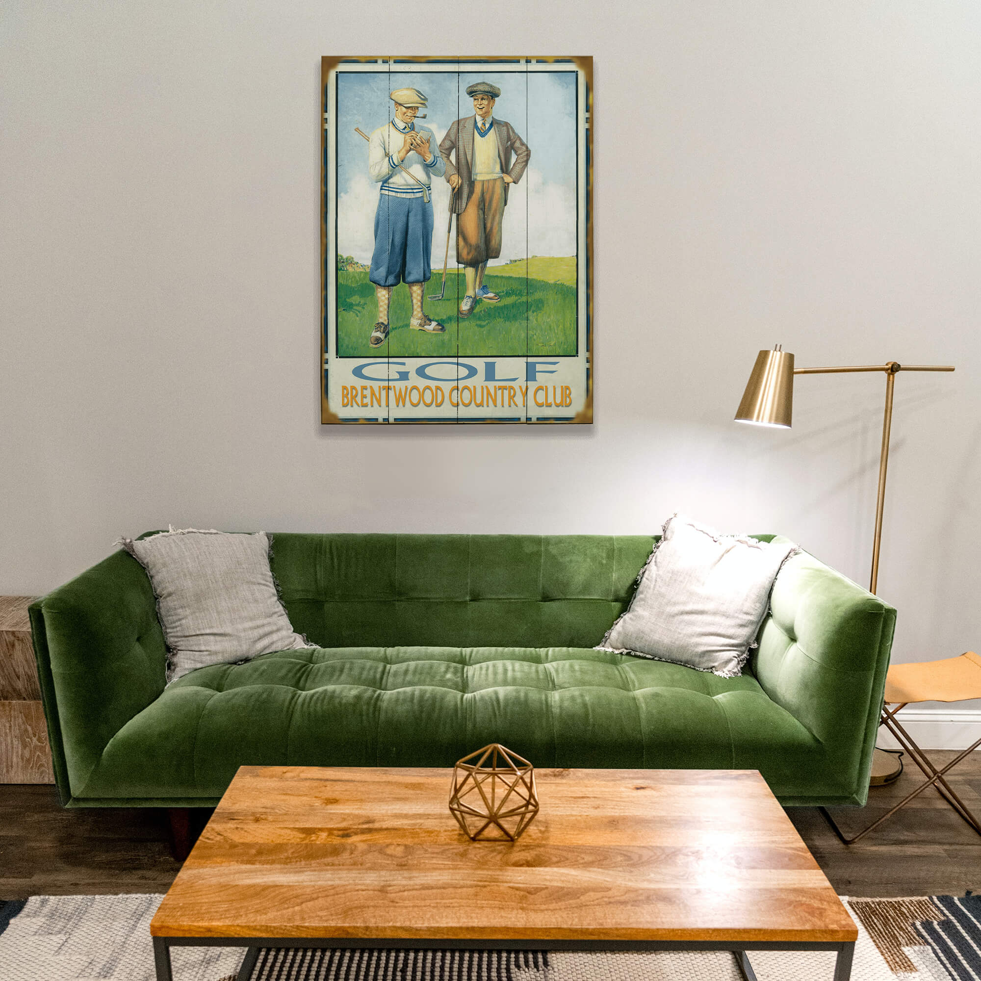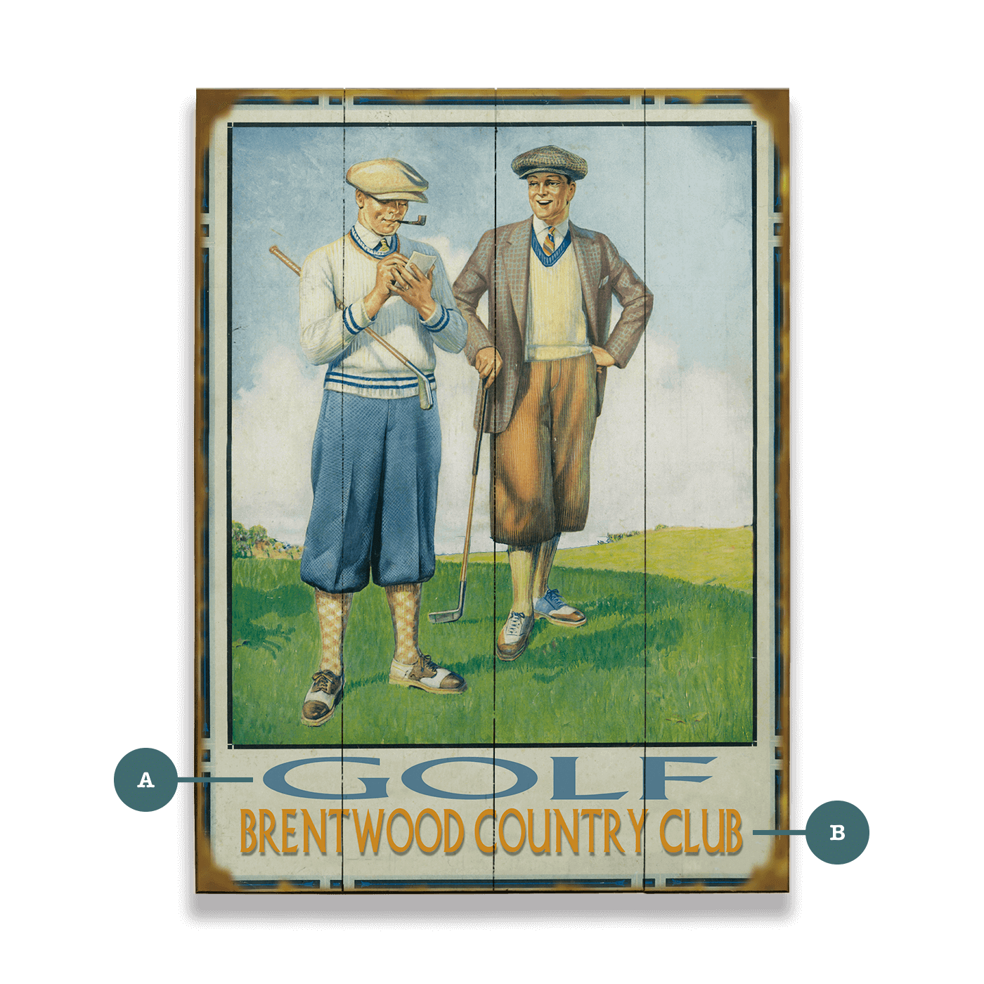 This captivating artwork vividly captures the essence of classic golf attire and camaraderie on the course. Featuring two gentlemen golfers in period clothing, this piece transports viewers back to the golden age of golf. The detailed illustration, set against a backdrop of a serene golf course, reflects both the sport's tradition and the relaxed social atmosphere that surrounds it. Ideal for golf enthusiasts or anyone who appreciates the charm of vintage sports art, this piece adds a historical and stylish touch to any setting.