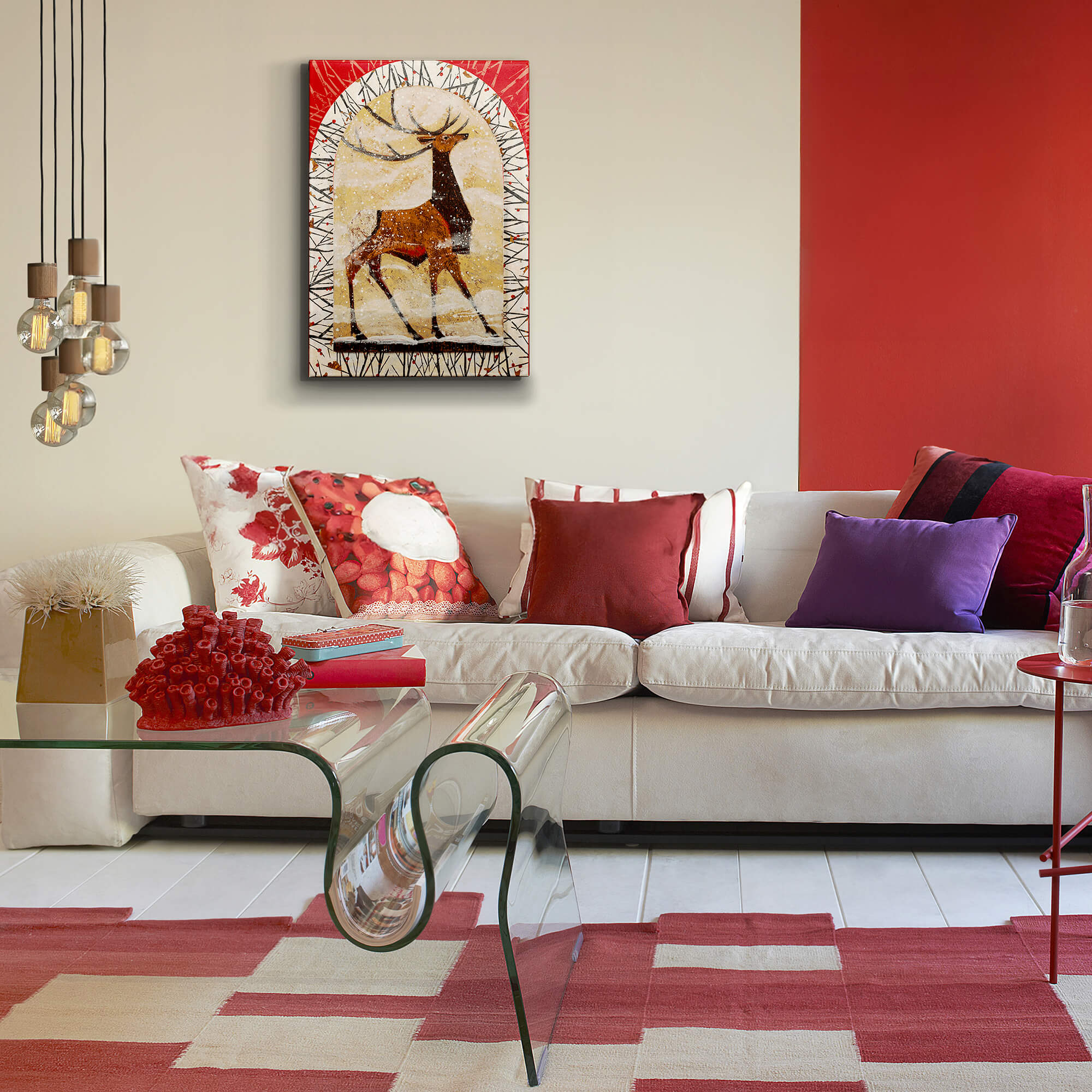 Embrace the spirit of the season with 'Winter Wapiti Elk,' a stunning piece that captures the elegance and majesty of a wapiti elk against a snowy backdrop. This art features a beautifully rendered elk within a festive, arched window design, set against a vibrant red and snowy scene with the message 'Merry Christmas.' Ideal for enhancing your holiday decor, this piece combines rustic charm with a touch of elegance, making it a perfect addition to any home during the festive season.