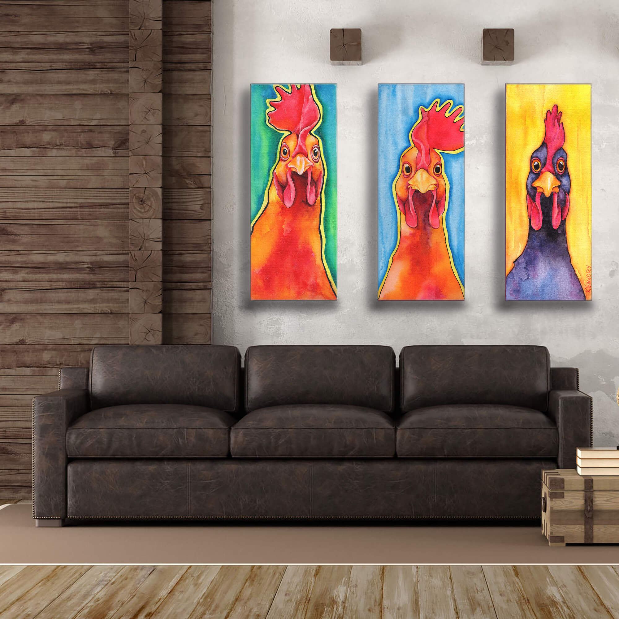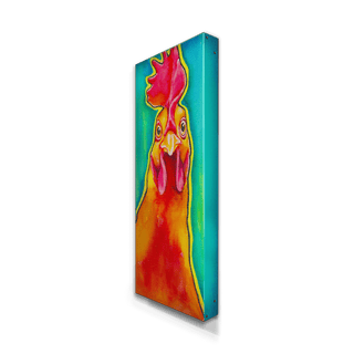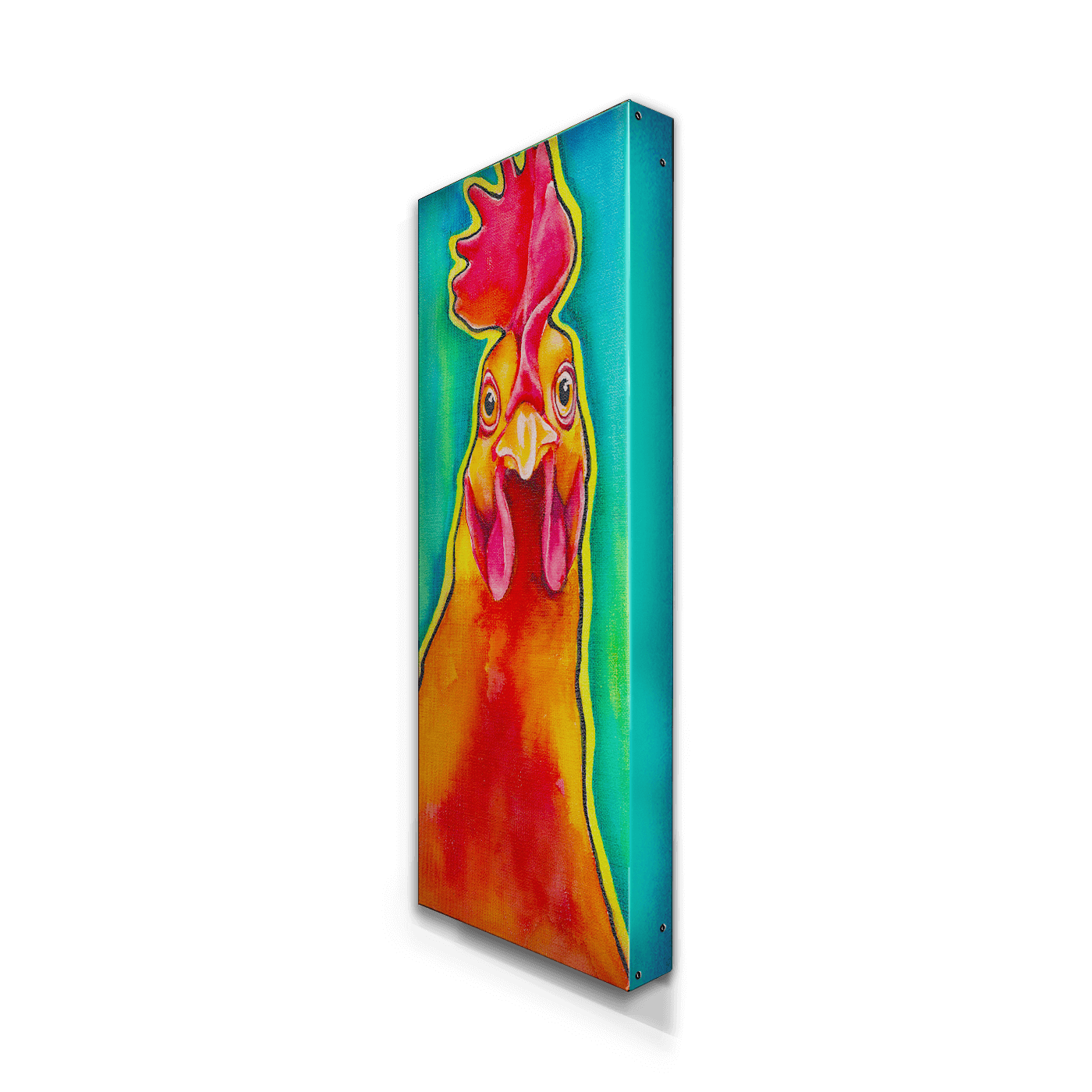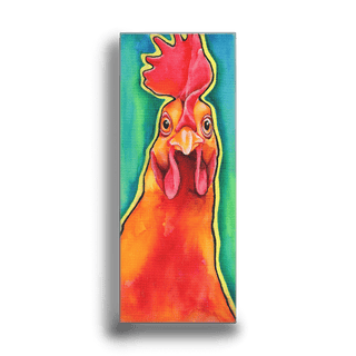 Add a burst of personality to your decor with this vibrant artwork featuring a colorful chicken set against a dynamic green and blue background. The fiery red and orange tones of the chicken contrast beautifully with the cool hues, creating a lively and captivating design. Perfect for farmhouse-inspired spaces, kitchens, or anyone who loves whimsical, animal-themed art, this piece radiates charm and bold energy.
