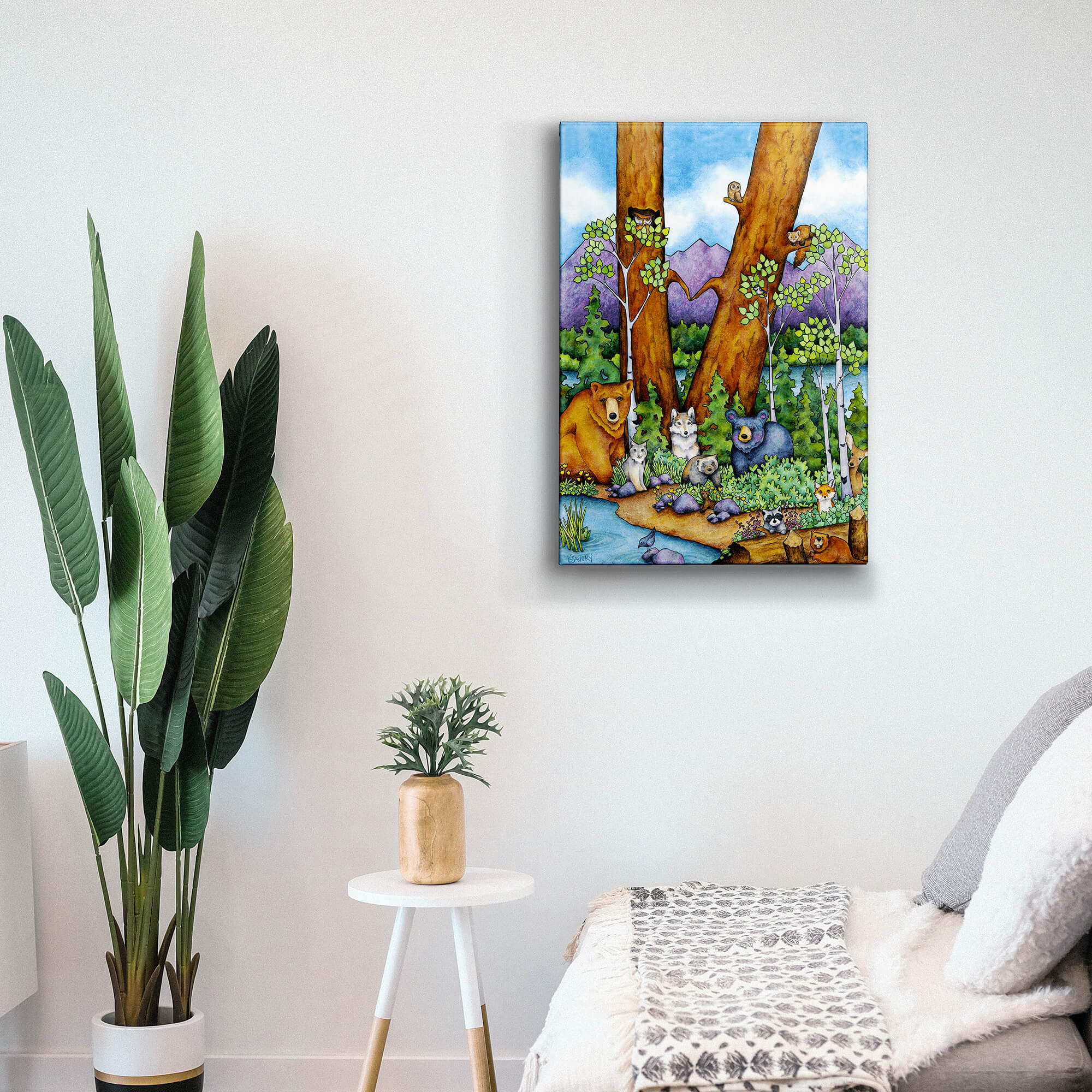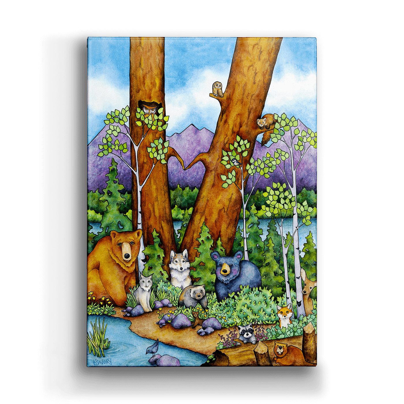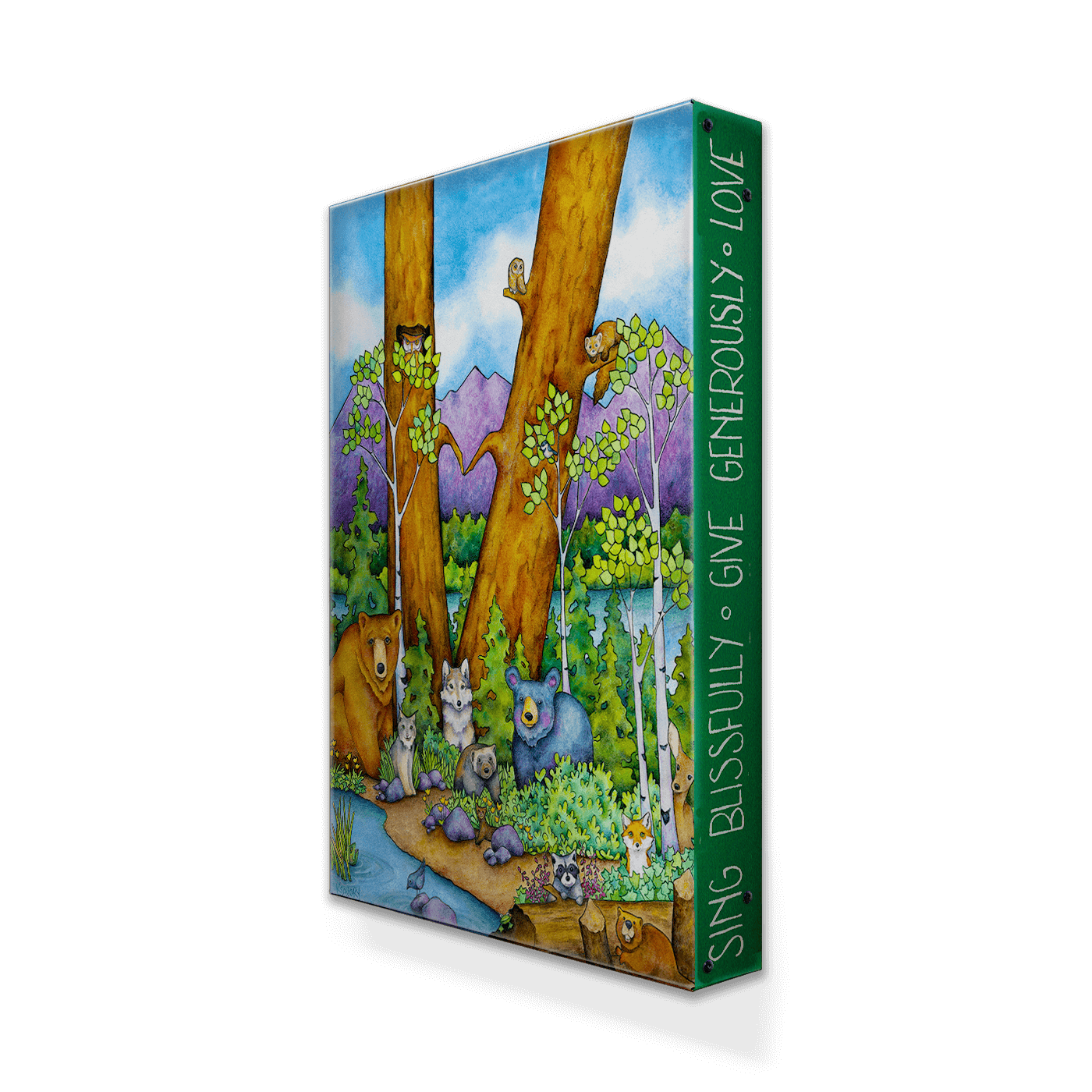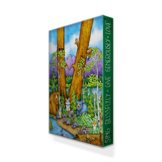 Bring the forest to life with a charming gathering of woodland creatures, including a bear, wolf, owl, and more, nestled among tall trees and vibrant greenery. The scene captures a spirit of harmony and joy, with each animal adding unique personality to the peaceful setting. Surrounded by uplifting phrases, this piece serves as a reminder to live mindfully and embrace kindness. Perfect for nature lovers and those who cherish wildlife, this artwork radiates warmth and community, making it a wonderful addition to any space seeking a touch of natural beauty and inspiration.