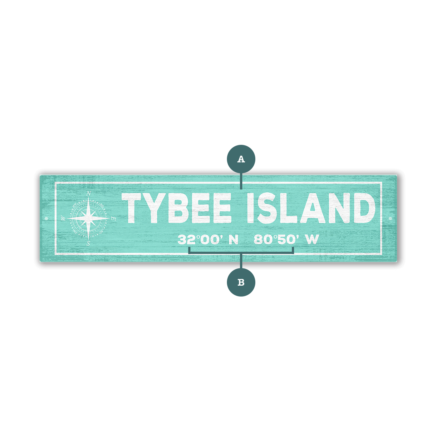 Landmark Compass Coordinates Custom Signs: Aqua - Wall Decor