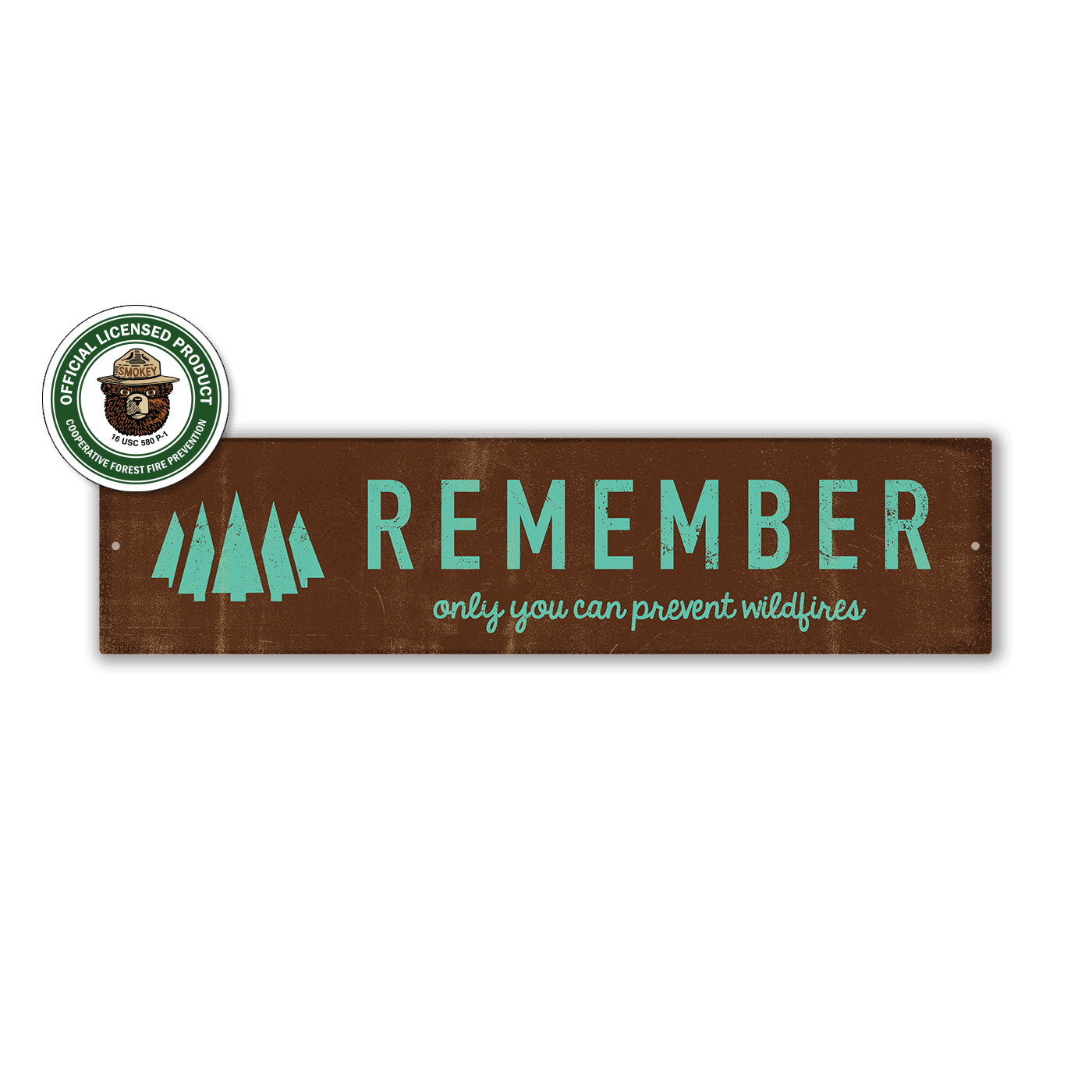 This rustic brown sign pairs simple pine tree graphics with Smokey Bear’s famous message: Remember—only you can prevent wildfires. With its clean design and timeless reminder, it’s an ideal piece for camps, cabins, nature centers, or anywhere outdoor values are celebrated. A subtle yet powerful way to encourage care and responsibility in the great outdoors.