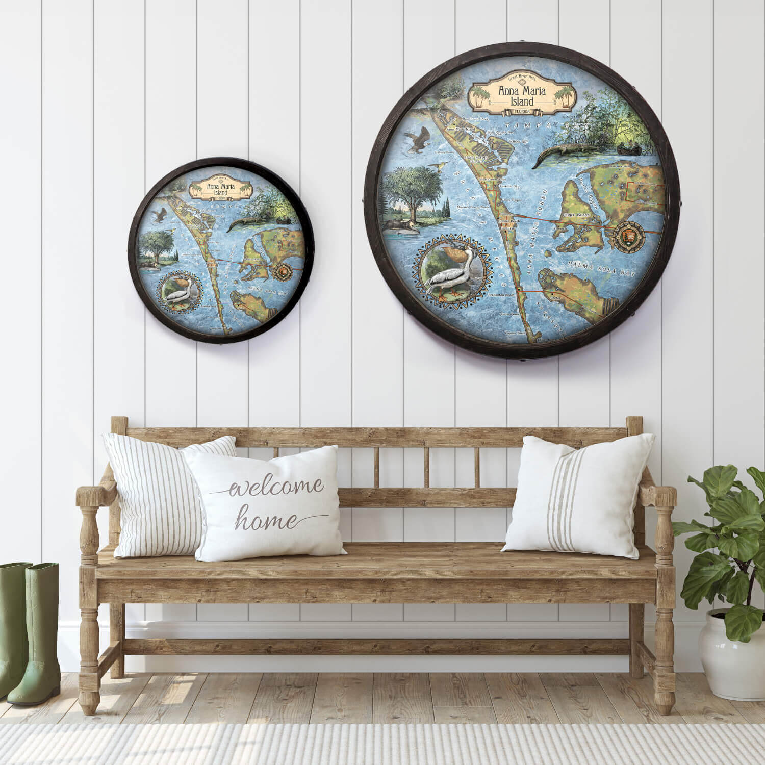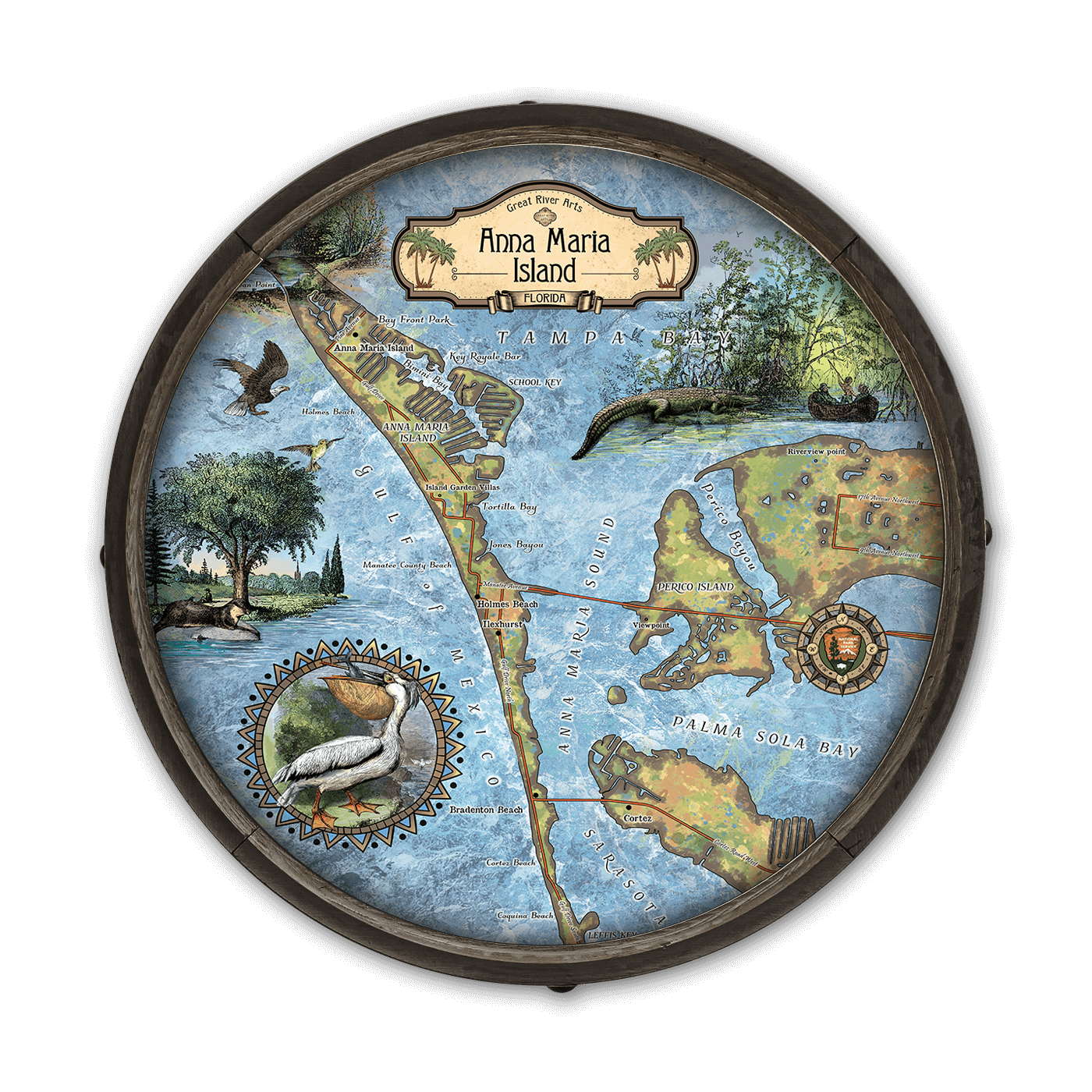 Anna Maria Island, Florida: Illustrated Map - Barrel End Wall Art