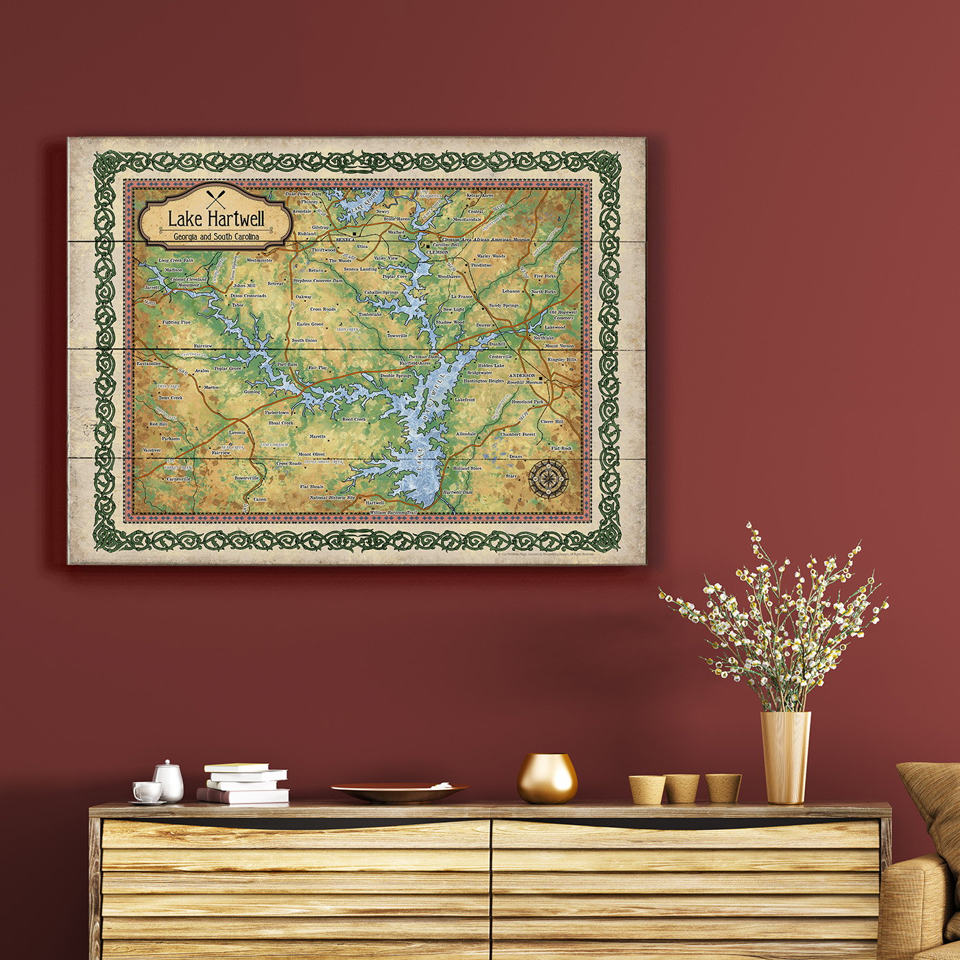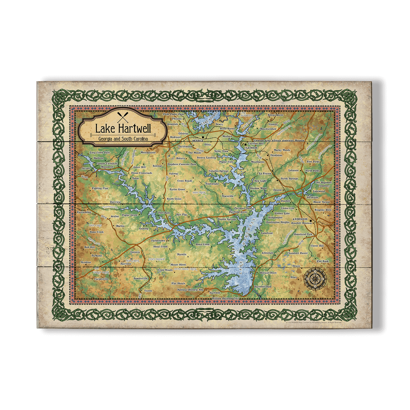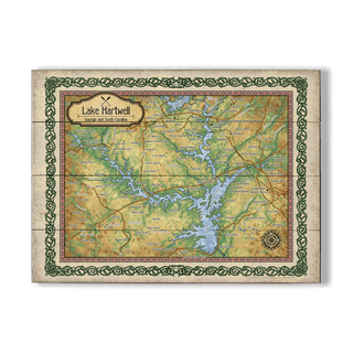 Explore the rich history and natural beauty of Lake Hartwell with our meticulously crafted map, spanning across Georgia and South Carolina. Named after Nancy Hart, a renowned heroine of the American Revolutionary War known for her valor and dedication to the Patriot cause, this map captures the sprawling expanse of one of the Southeast's largest and most popular lakes. Detailed geographical contours and points of interest are highlighted, making it perfect for local history enthusiasts and nature lovers alike. Enhance your decor with this elegant and informative piece that celebrates both the aesthetic appeal and the spirited legacy of Nancy Hart.