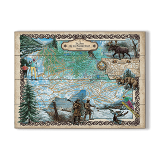 Three Lakes Chain of Lakes, Wisconsin: Illustrated Map - Wood & Metal Wall Art