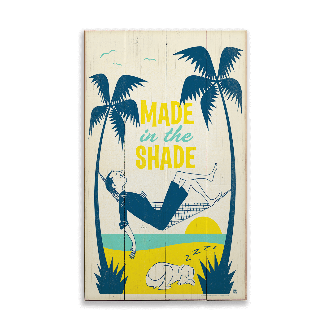 Unwind to the tropical beat of leisure with this "Made in the Shade" artwork, perfect for anyone who dreams of lazy afternoons under the sway of palm trees. The illustration captures a blissful scene of relaxation with a man and his dog enjoying the cool comfort of a hammock, epitomizing the laid-back lifestyle. This piece's retro aesthetic and cool, calming colors make it an ideal addition to any space that cherishes the slow pace and pleasure of a life well-lived.