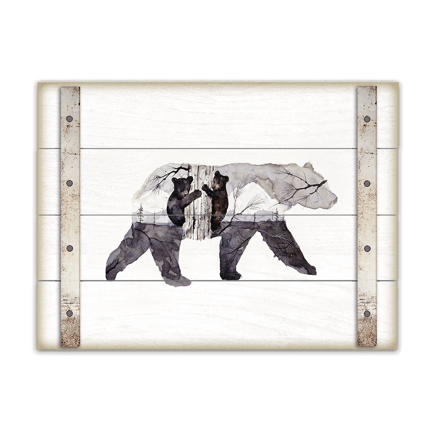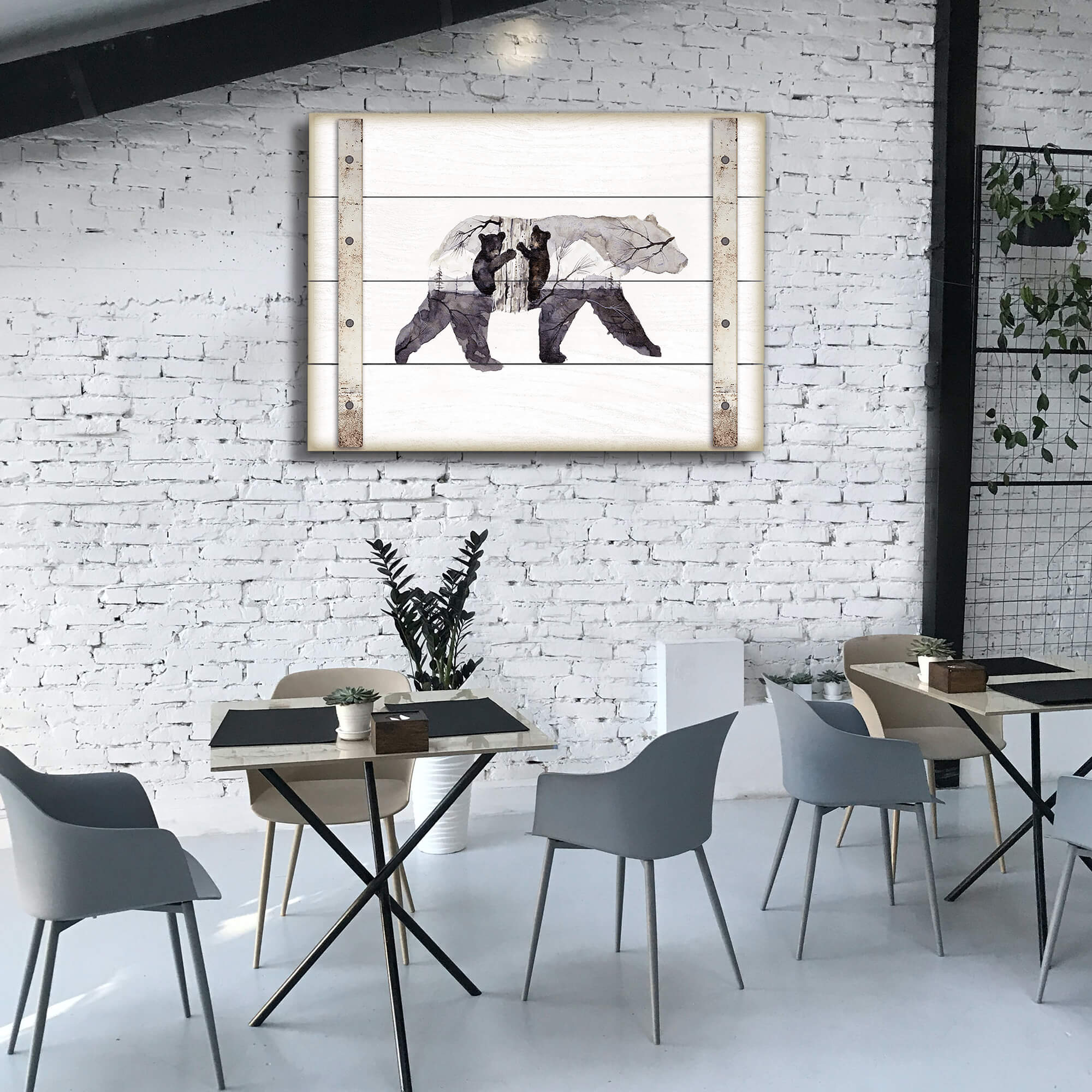 This watercolor painting beautifully interweaves the silhouette of a mother bear and her cubs with the serene landscape of their natural habitat. The subtle tones and delicate lines create a sense of unity and maternal bond in the wild. This artwork is perfect for those who appreciate the tender moments in nature and the profound connections that transcend the animal kingdom.