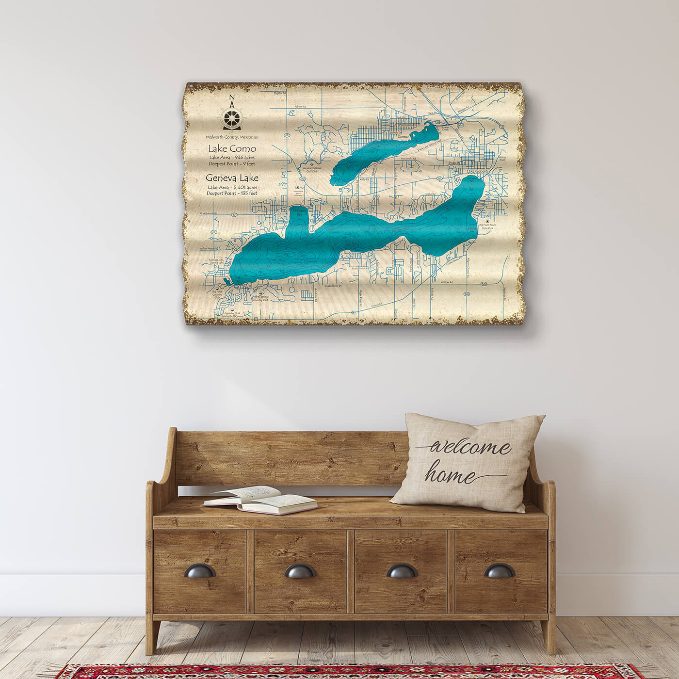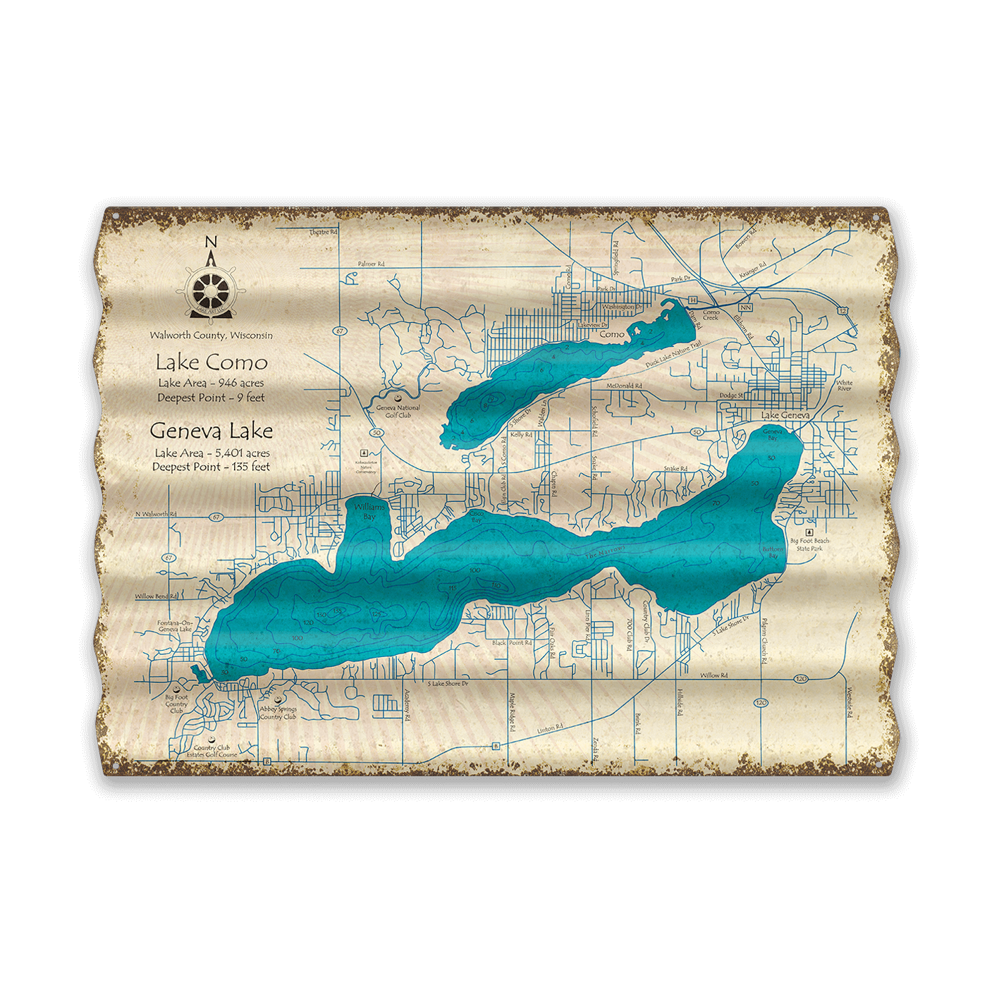 Lake Como and Lake Geneva, Wisconsin - Corrugated Metal Wall Art