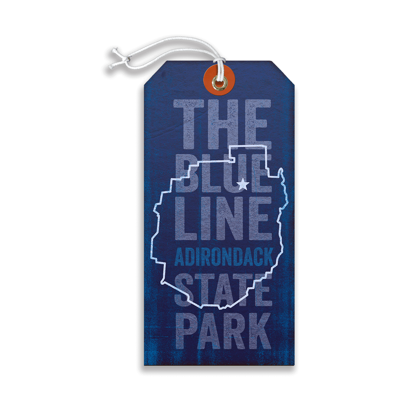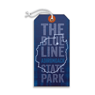 This striking artwork features a vintage-inspired luggage tag design highlighting the "Blue Line," which marks the boundary of the Adirondack State Park in New York. With its deep blue tones and bold typography, this piece pays homage to the natural beauty and vast wilderness of the Adirondacks, a beloved destination for outdoor enthusiasts. Perfect for anyone with a love for nature and adventure, this artwork captures the spirit of one of America's most iconic state parks.