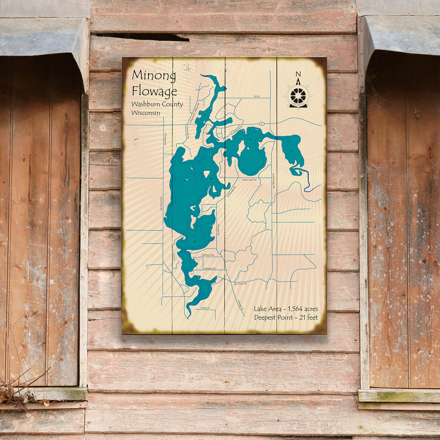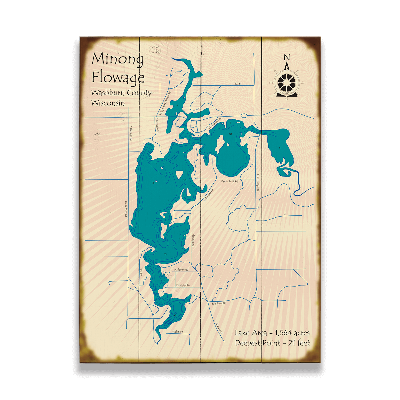 Minong Flowage - The Waterway Wonder of Washburn County, Wisconsin. Capture the rustic charm of Wisconsin's Northwoods with our beautifully detailed Minong Flowage Map, highlighting one of Wisconsin's prized freshwater expanses in Washburn County. Covering an impressive 1,564 acres with depths reaching 21 feet, Minong Flowage is not just a map feature but a recreational paradise.