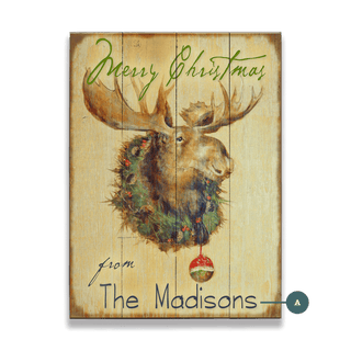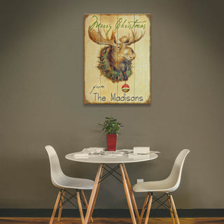 Moose in Wreath: Personalized - Wood & Metal Wall Art