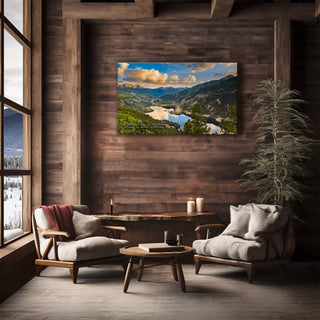 Mountain Lake Panorama - Wood & Metal Wall Art