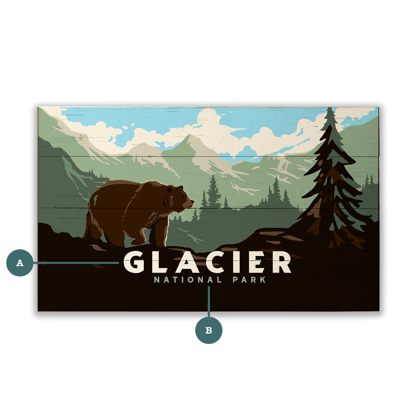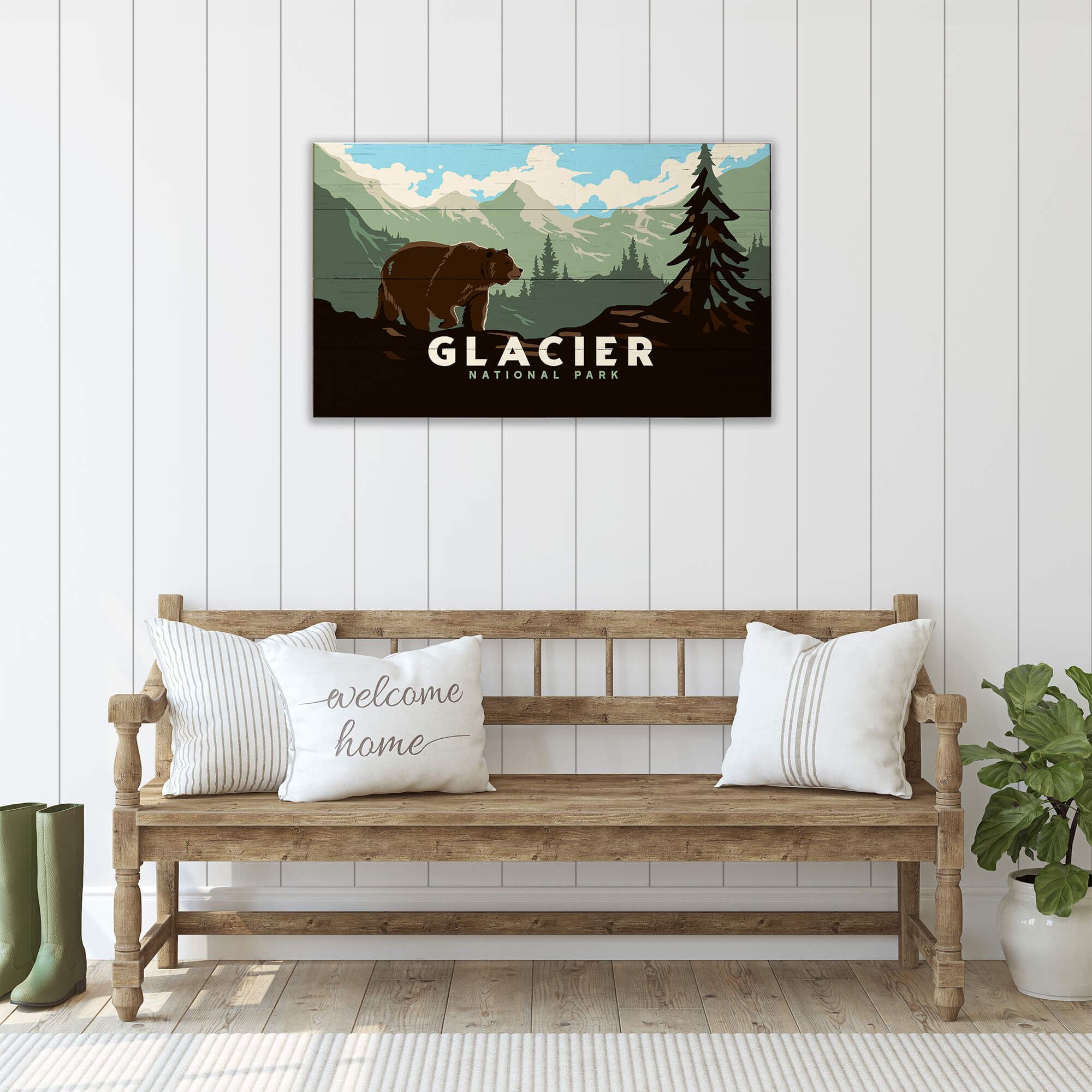Bring the beauty of Glacier National Park into your home with this vintage-style wall sign featuring a wandering grizzly against a backdrop of rugged peaks and alpine forest. Printed on your choice of materials, this artwork captures the park’s wild scenery with rich color and classic retro charm. Perfect for cabins, living rooms, and anyone who loves Montana’s iconic landscapes. The text can be customized, making it easy to add your own location, family name, or special trip memories.