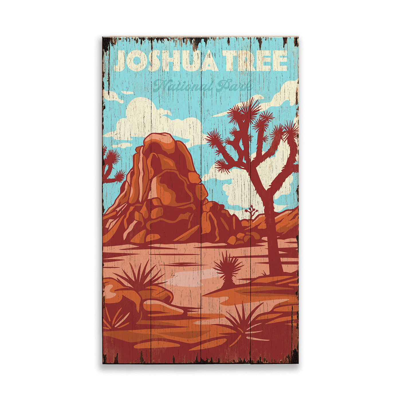 Iconic Joshua Tree National Park: Distressed Finish - Wood & Metal Wall Art
