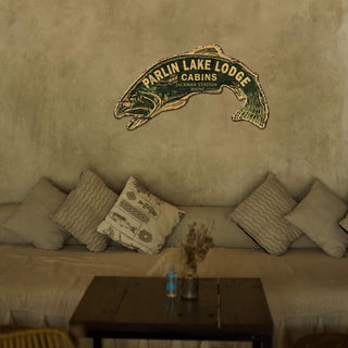 Rustic Fish Lodge Sign - Wood Wall Decor Shaped Wall Art Out West Design