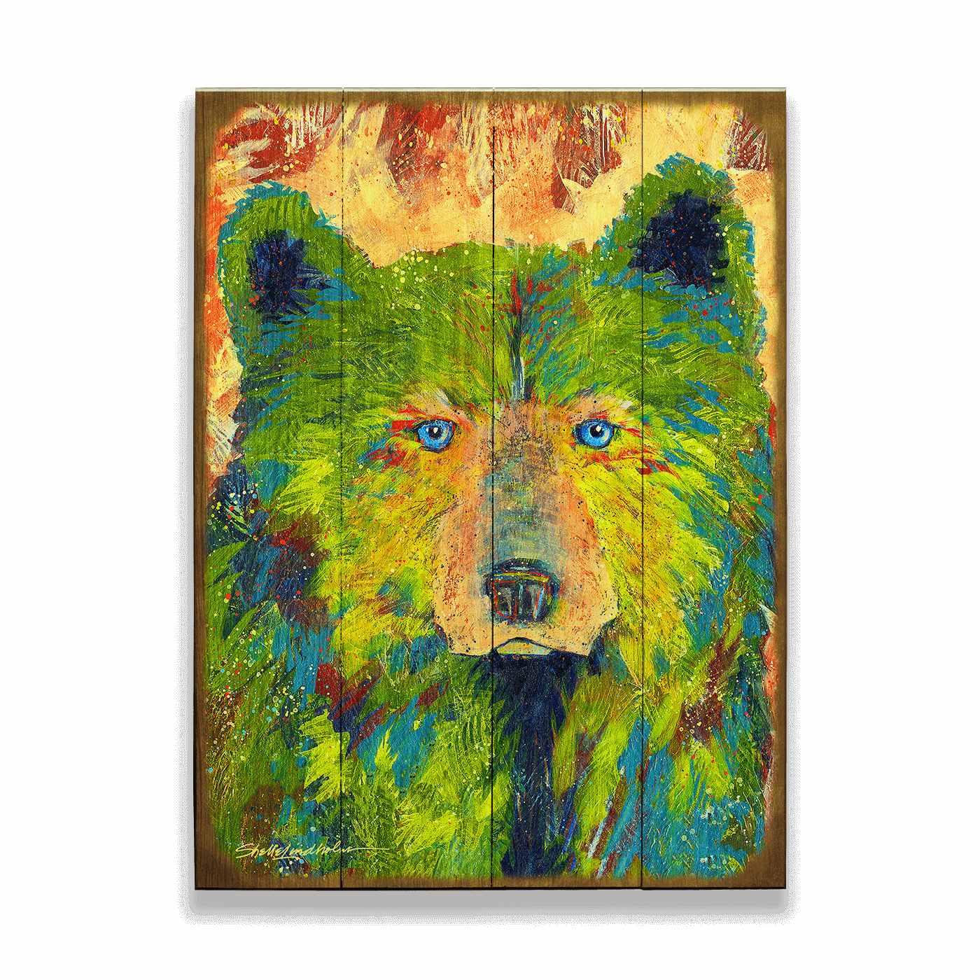 Embrace the wild with 'Fern,' a mesmerizing portrayal of a bear whose vibrant fur blooms with the lush colors of the forest. This captivating artwork is a vivid mosaic of greens, blues, and earth tones, layered with dynamic, expressive brushstrokes that evoke the dense foliage of ferns. The bear's intense blue eyes draw you into a world of natural mystery and beauty, making it a striking addition to any art collection or home decor.