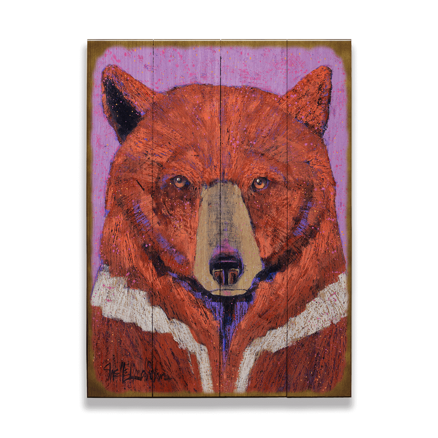 Command attention with this striking artwork featuring a majestic bear against a vibrant purple backdrop. The rich orange and brown tones of the bear’s fur create a powerful contrast, while the fine details bring depth and intensity to its gaze. Perfect for adding warmth and bold energy to any space, this piece celebrates the regal beauty of wildlife with a contemporary artistic twist.