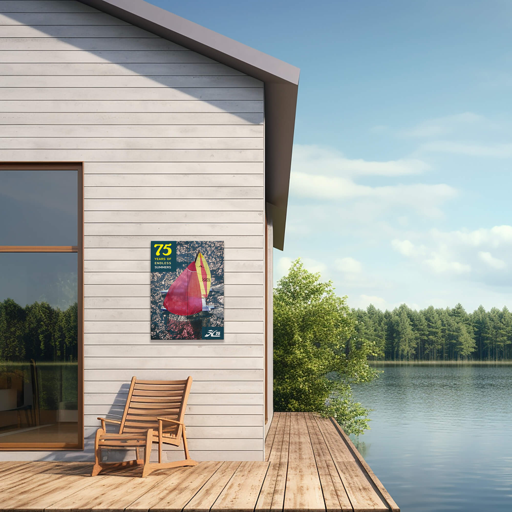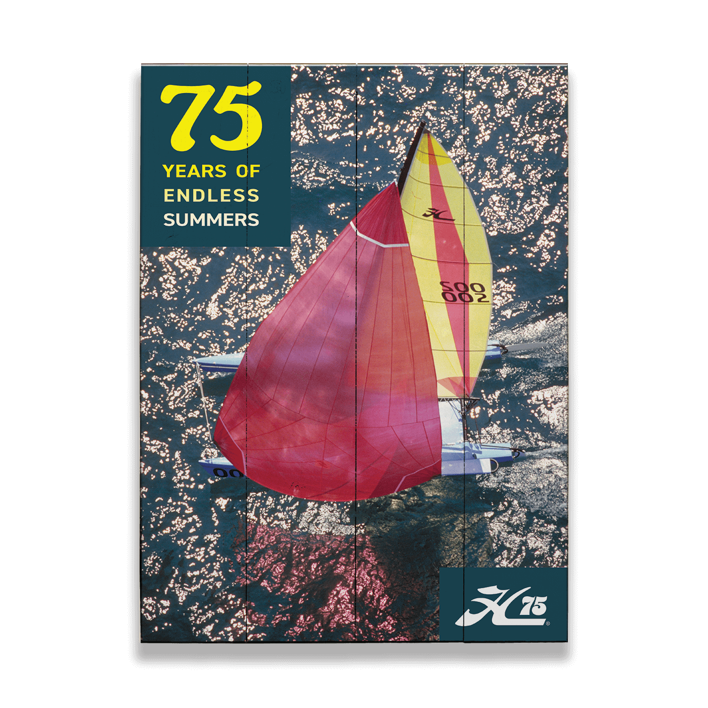 A powerful tribute to endless summers and a brand that continues to shape the way we sail, this vibrant special edition piece celebrates 75 years of Hobie with a striking aerial view of a catamaran slicing through sunlit water under full sail. The bold red and yellow sails glow against the shimmering sea, capturing the speed, style, and freedom that define Hobie’s legacy. Ideal for sailors, adventurers, and fans of nautical design, this artwork brings dynamic energy to beach homes, coastal offices, or any space inspired by life on the water.