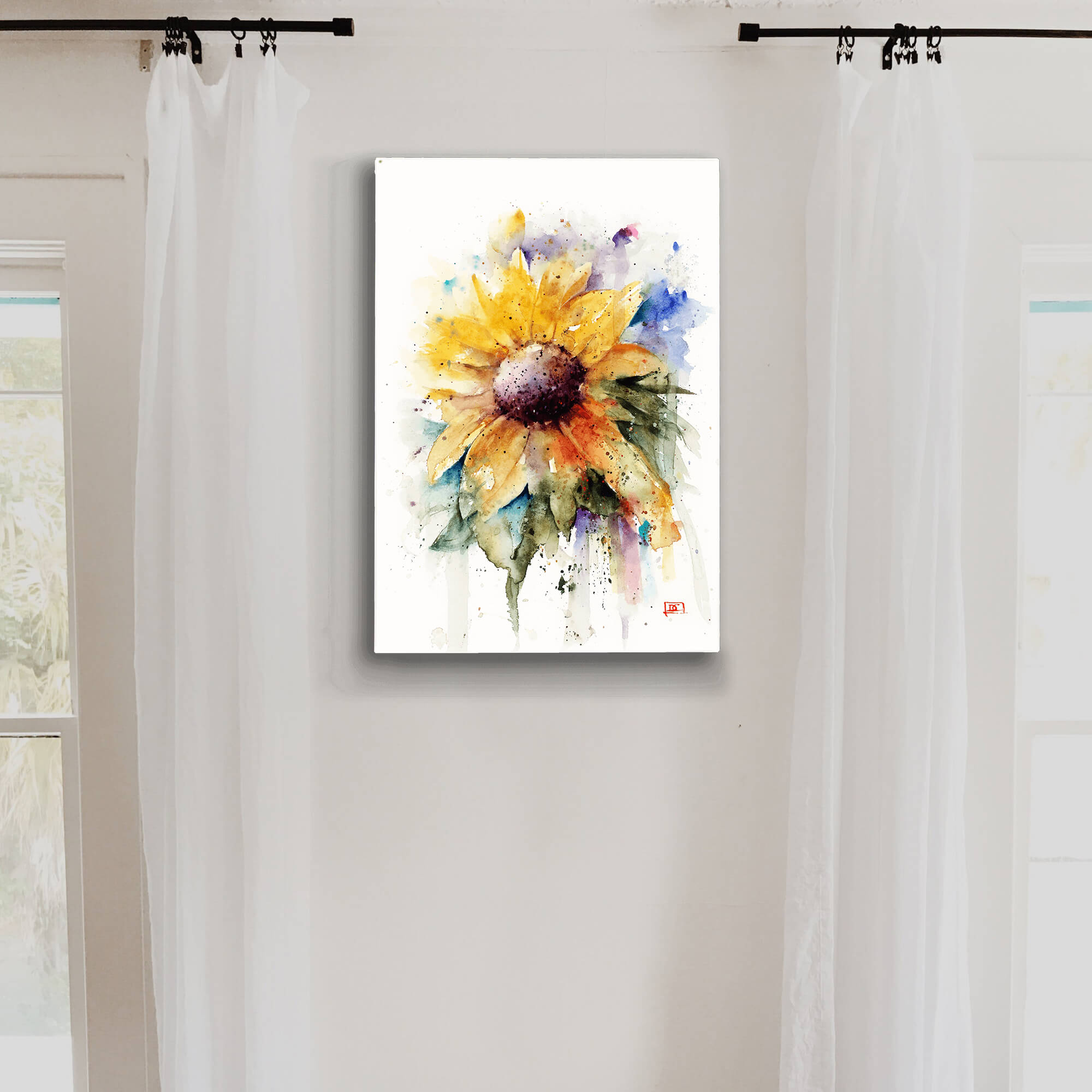 Immerse yourself in the vibrant and soul-stirring beauty of this watercolor sunflower painting. Bursting with lively yellows and dramatic splashes of color, this artwork captures the essence of summer and the joyful spirit of sunflowers. Ideal for those looking to brighten their living space or office, this piece offers a fresh and modern take on floral art, making it a perfect addition for collectors and decorators alike.