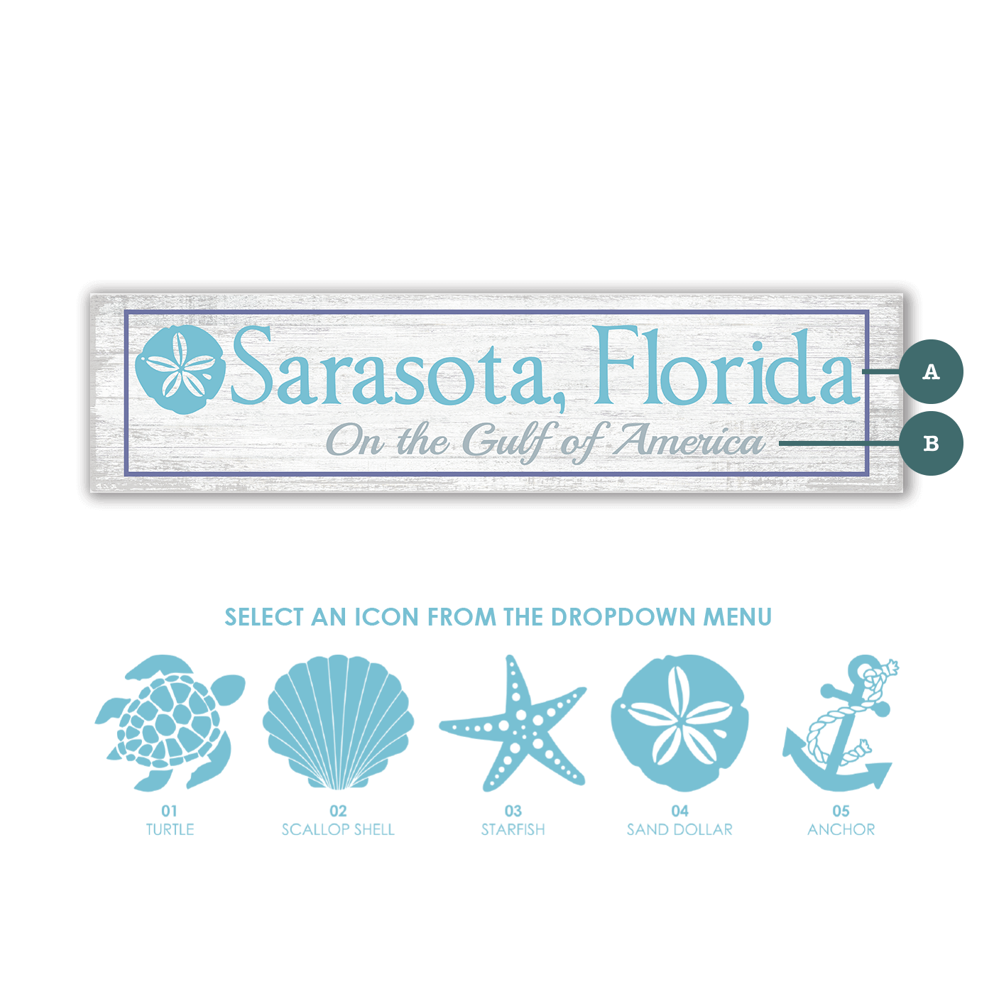 Capture the laid-back spirit of the coast with this customizable sign featuring weathered wood styling and bright, beachy colors. With your choice of five coastal-inspired icons, you can tailor it to fit your favorite theme—sea turtles, shells, anchors, and more. The text is fully customizable too, making it perfect for personalizing a beach house, rental, patio, or coastal-themed room. Designed to celebrate natural beauty and relaxed seaside living, it’s an inviting accent that brings breezy charm to any space.