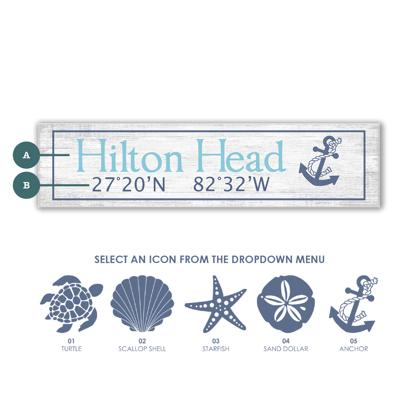 Capture the laid-back spirit of the coast with this customizable sign featuring weathered wood styling and bright, beachy colors. With your choice of five coastal-inspired icons, you can tailor it to fit your favorite theme—sea turtles, shells, anchors, and more. The text is fully customizable too, making it perfect for personalizing a beach house, rental, patio, or coastal-themed room. Designed to celebrate natural beauty and relaxed seaside living, it’s an inviting accent that brings breezy charm to any space.