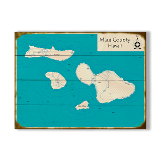 The Islands of Maui County, Hawaii - Wood & Metal Wall Art Wood & Metal Wall Art Lake Art Wood 23" x 17"
