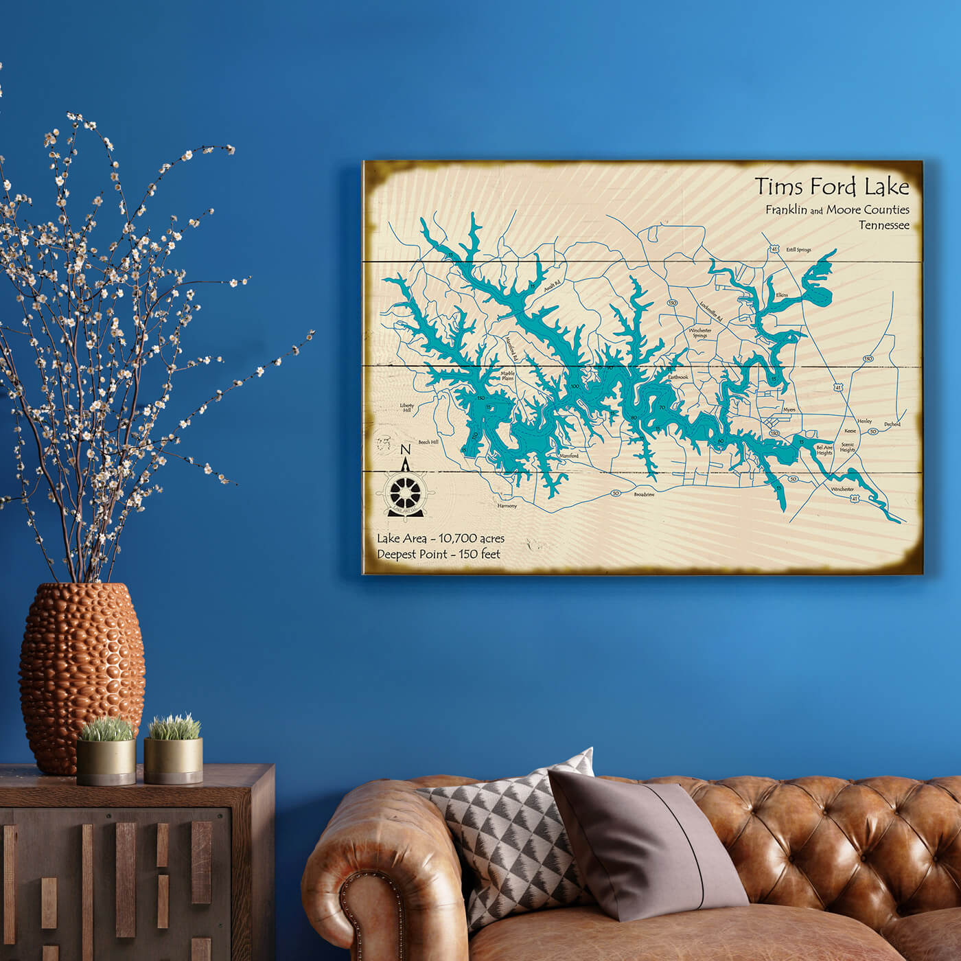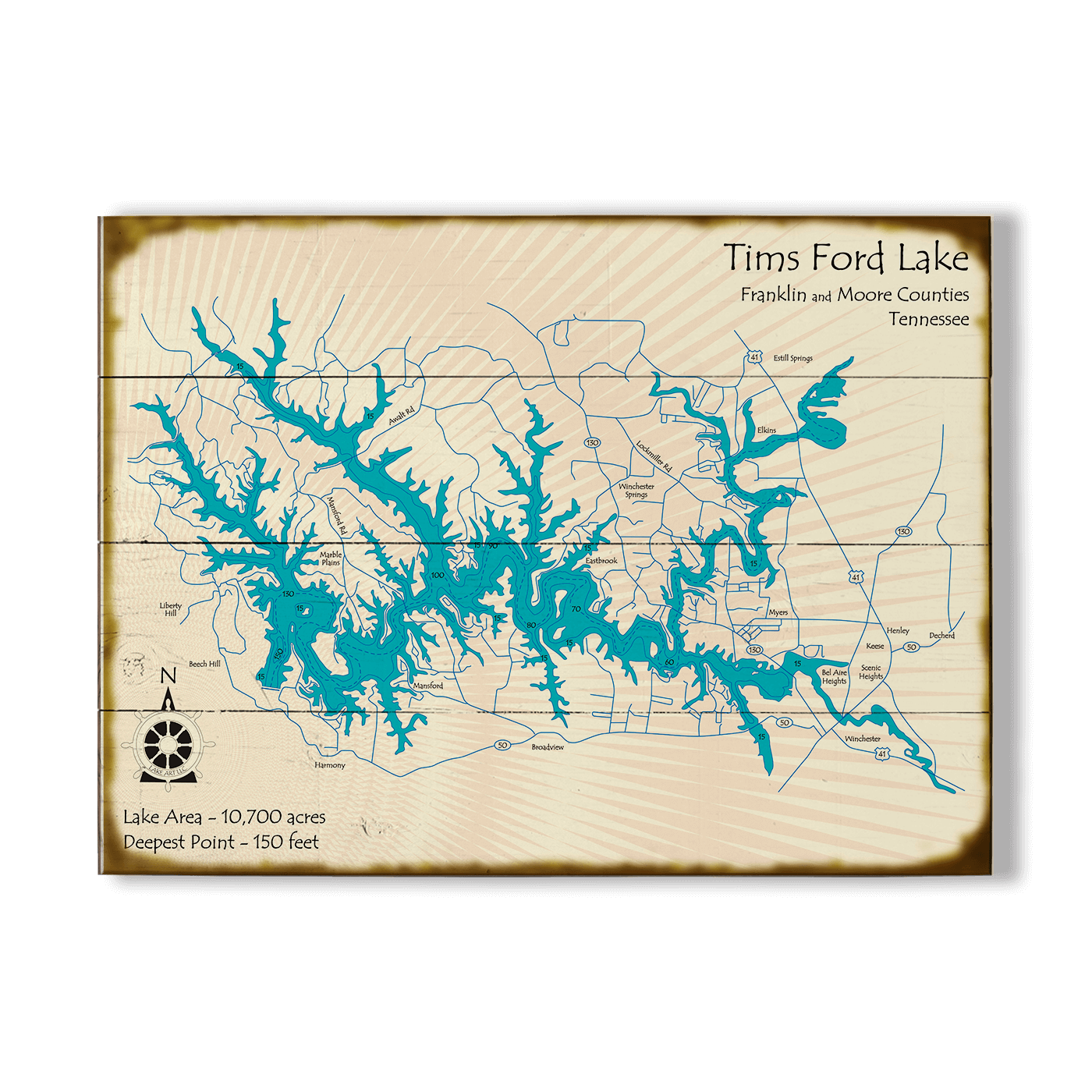 Introducing our stunning decorative map featuring the beautiful meeting point of the Elk River and Tims Ford Lake in south-central Tennessee. The wooded sloped shores surrounding the water create a picturesque landscape that will leave you breathless. Surrounding the lake are wooded sloped shores that create a picturesque landscape perfect for hiking and nature walks. Visitors can explore the nearby Tims Ford State Park, which offers camping, picnicking, and other recreational activities.