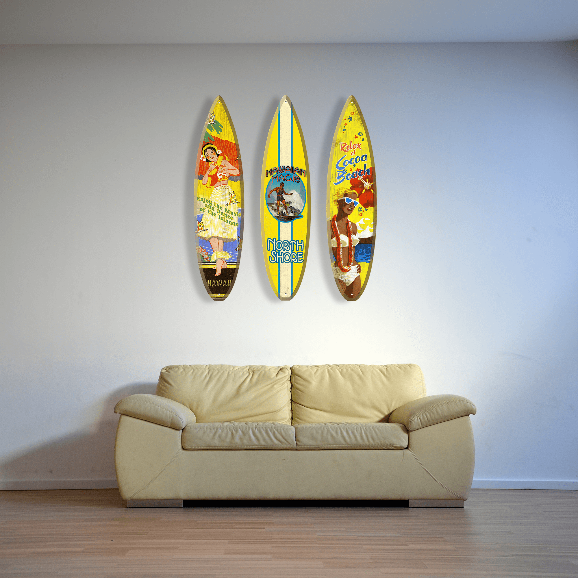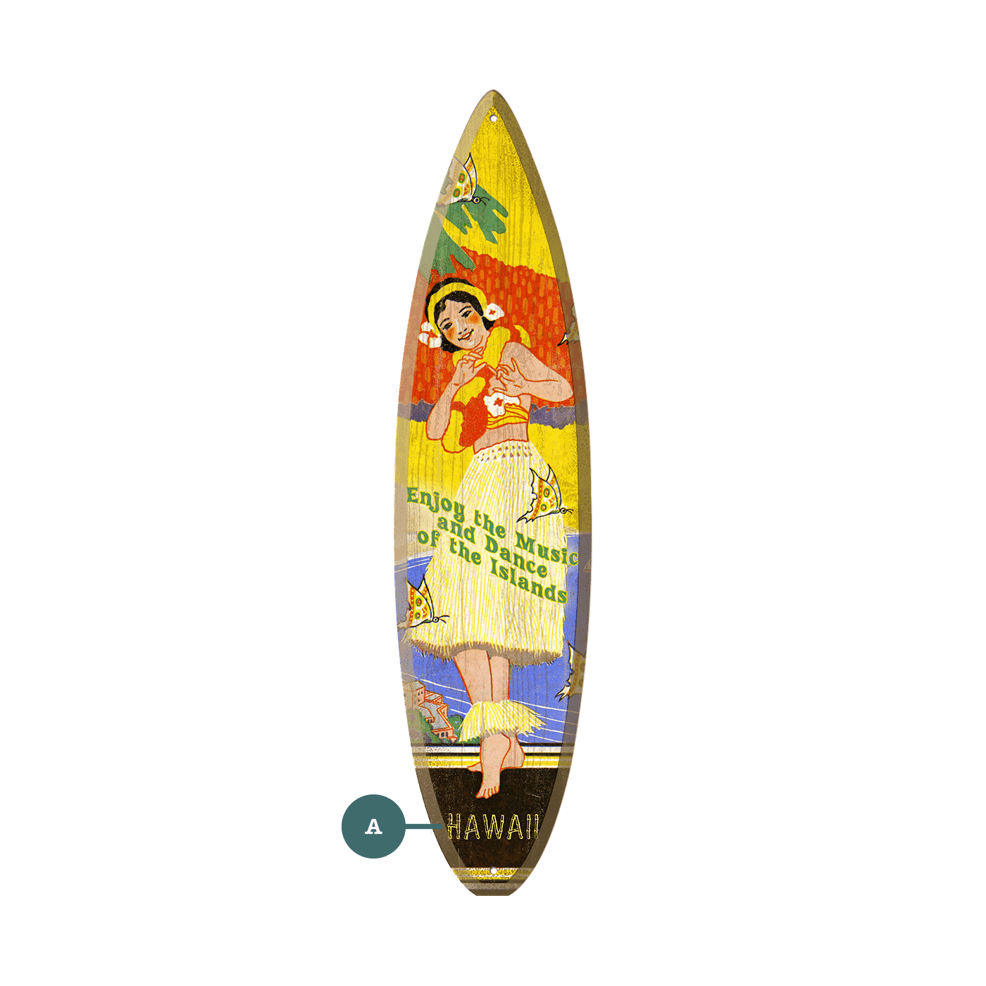 Experience the enchanting allure of island culture with this vibrant surfboard artwork. It features a lively depiction of a hula dancer, her expression and movement embodying the joy and rhythm of traditional island music and dance. The artwork's vivid colors and dynamic composition capture the spirit of the islands, making it a striking addition to any space. Perfect for those who appreciate cultural art and wish to infuse their decor with the lively, celebratory mood of island festivities.