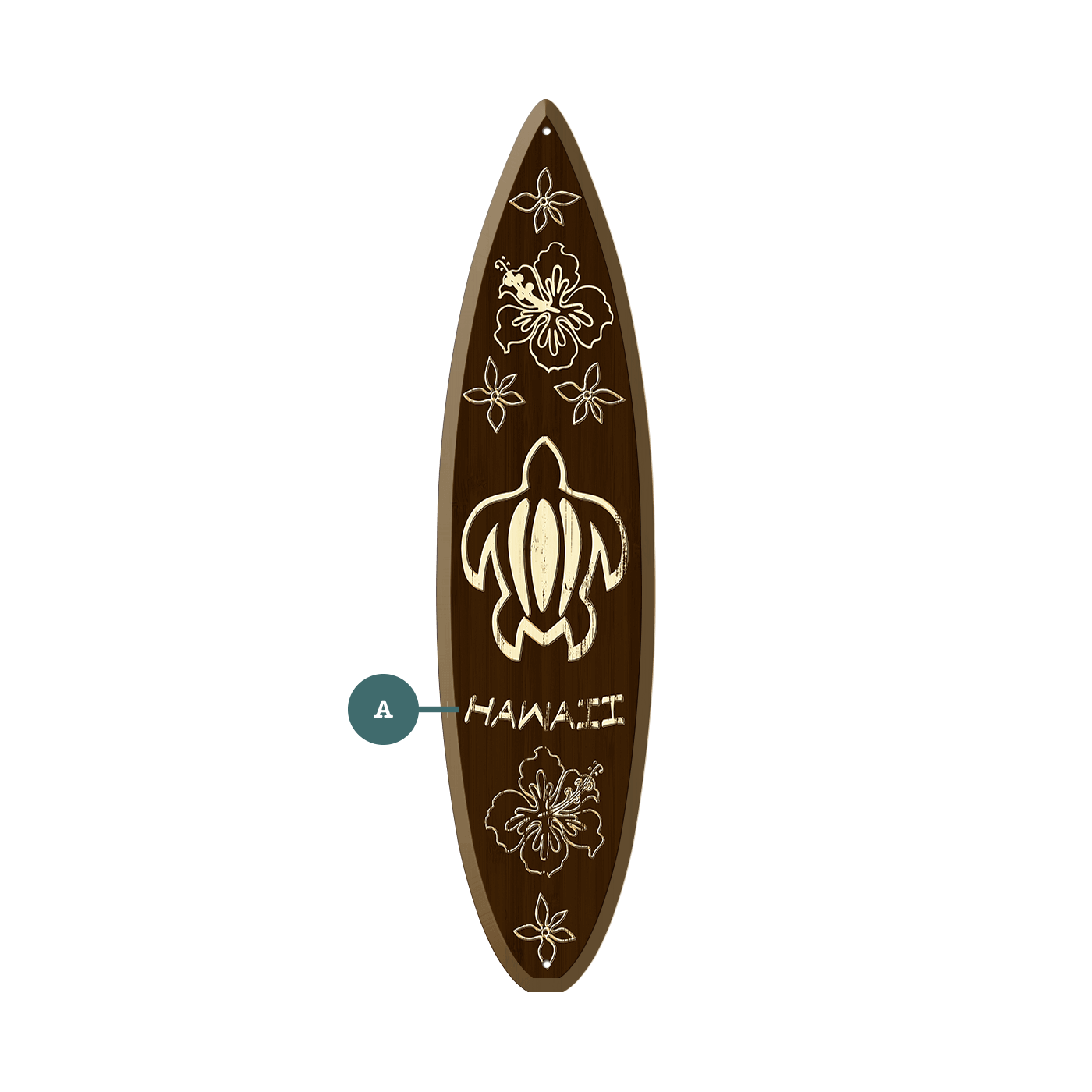 Capture the beauty of the islands with this Hawaiian sea turtle surfboard wall art. Featuring a carved-style turtle design surrounded by hibiscus and tropical flowers, this piece brings a natural island charm to your walls. With its rich wood tones and coastal details, it’s perfect for beach houses, ocean-themed rooms, or anyone who loves Hawaiian culture and sea life. A stylish reminder of the spirit of aloha and the timeless connection between Hawaii and the sea turtle.