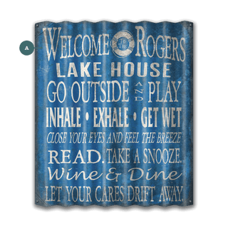 Welcome to the Lake House: Blue Personalized - Corrugated Metal Wall Art