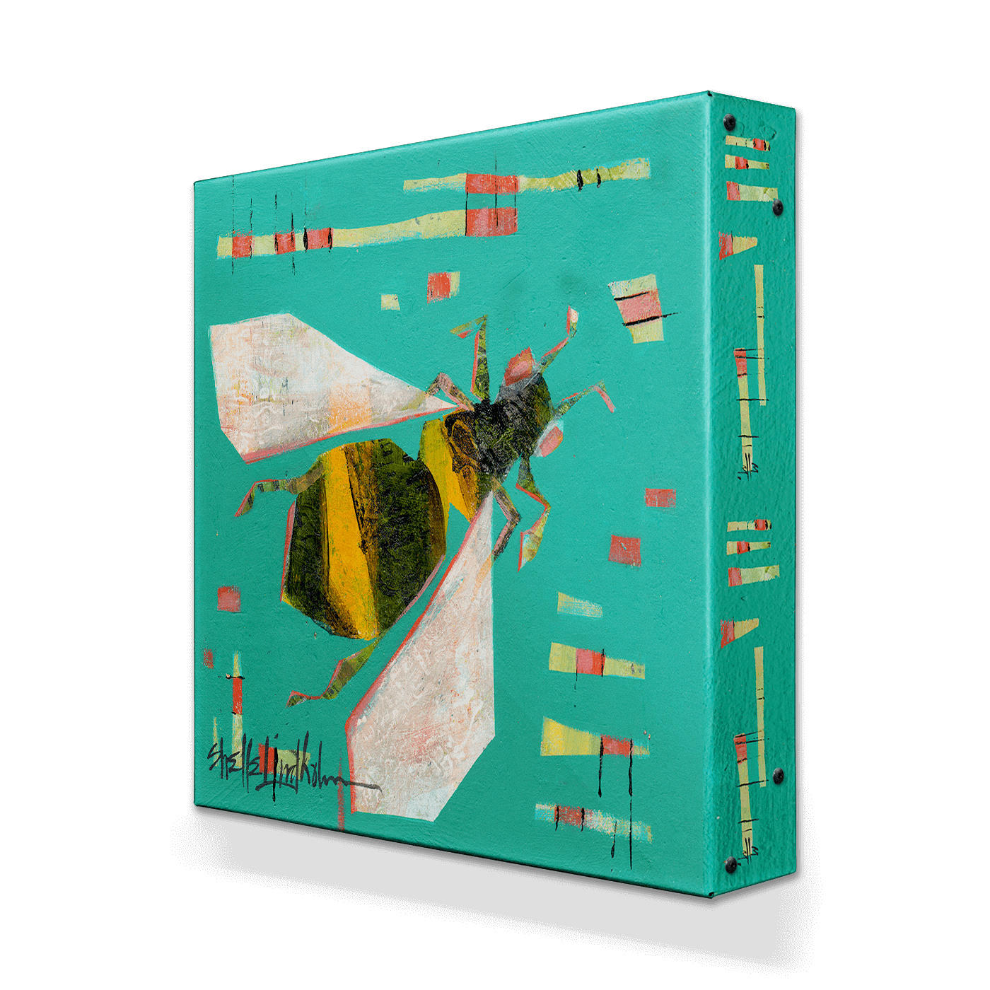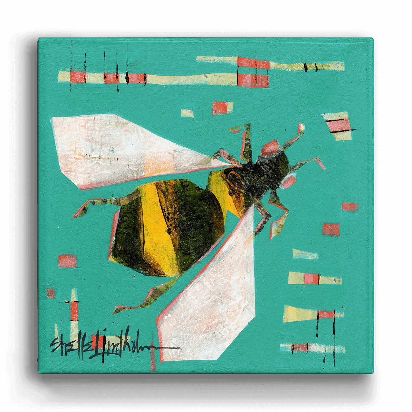 "Honey Gatherer" is a lively and colorful addition to the "A Bee Symphony" series. It depicts a bee in the midst of its vital role in nature. The dynamic composition and bright, contrasting colors emphasize the bee's energetic movement and critical task of gathering nectar. This artwork is ideal for anyone who appreciates vibrant art that celebrates the unsung heroes of the natural world.