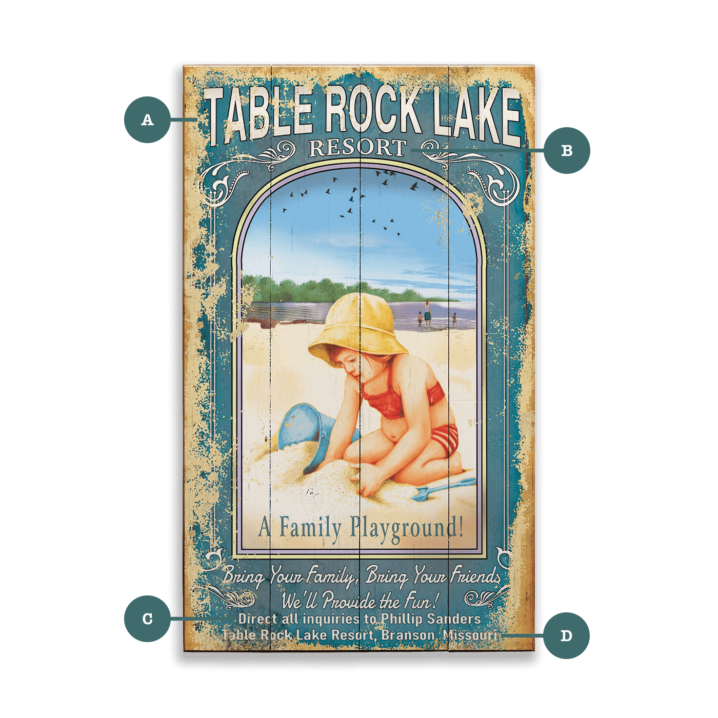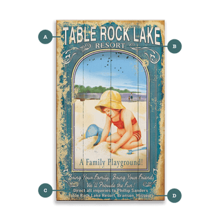 This nostalgic lake-themed artwork captures the essence of a family-friendly beach getaway, featuring a playful scene of a child building sandcastles under the sun. With vintage-style colors, ornate framing, and a weathered finish, it brings a warm and inviting feel to any room. Perfect for lake houses, cottages, or any space that celebrates the joys of summer fun. Personalization options are available, allowing you to add your own custom text for a unique touch.