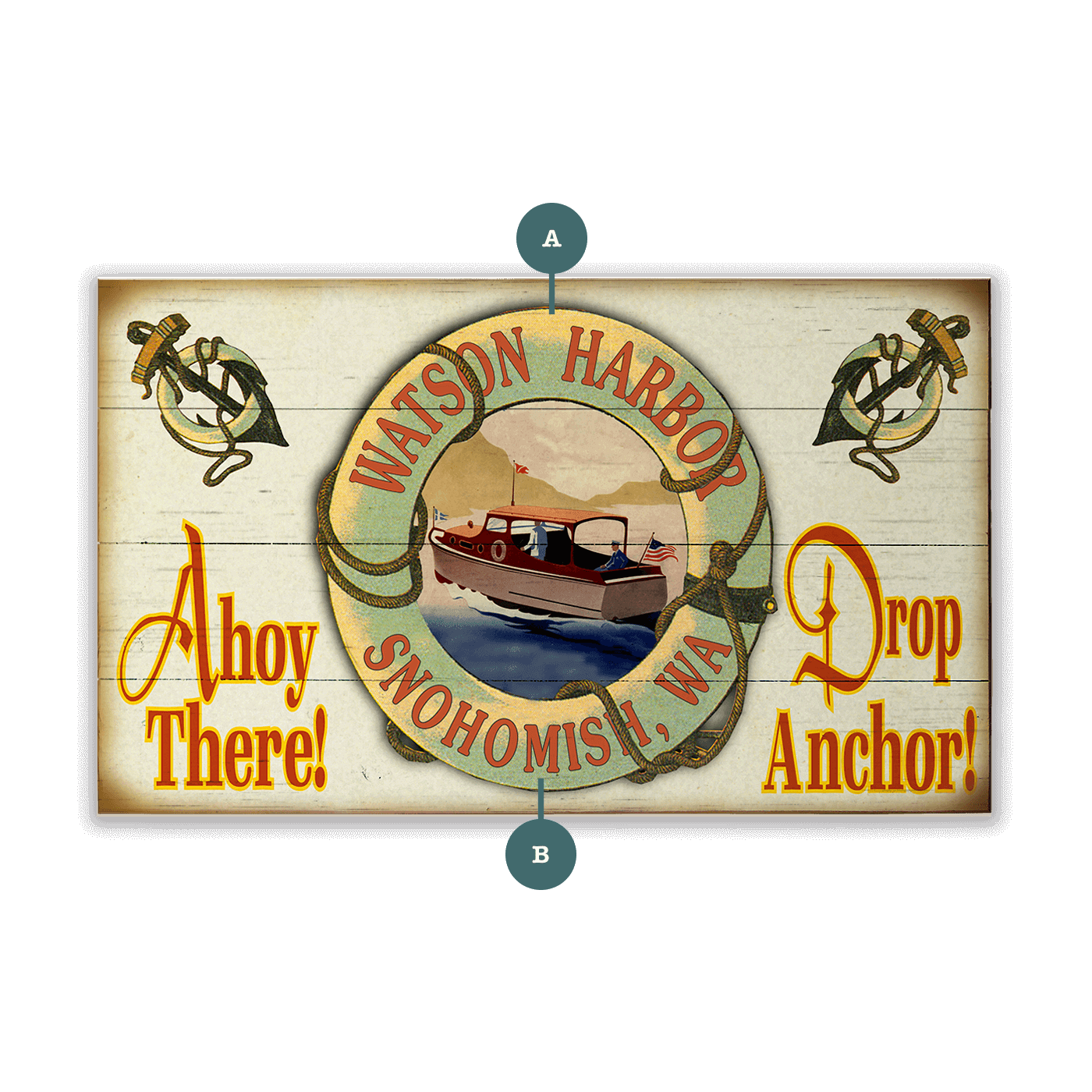 Enjoy complimentary personalization for this piece, meticulously handcrafted by our graphic design team. Specify your desired text for points A and B. To ensure perfection in your custom piece, please verify your text carefully. Missing personalization information will revert to our default design as shown. To remove all text from a field, type "Remove" in that field.