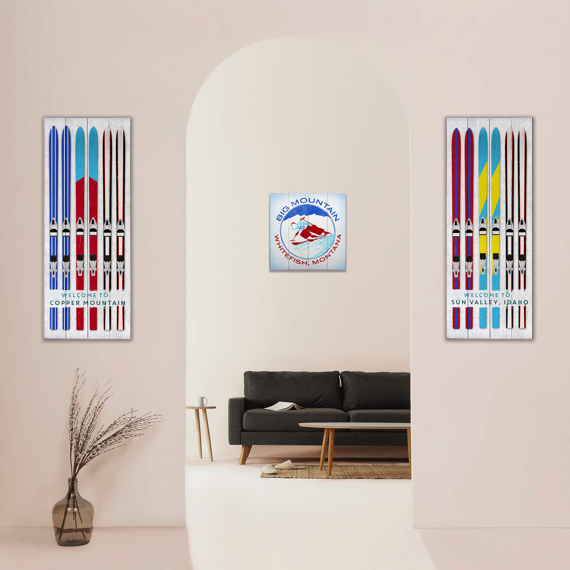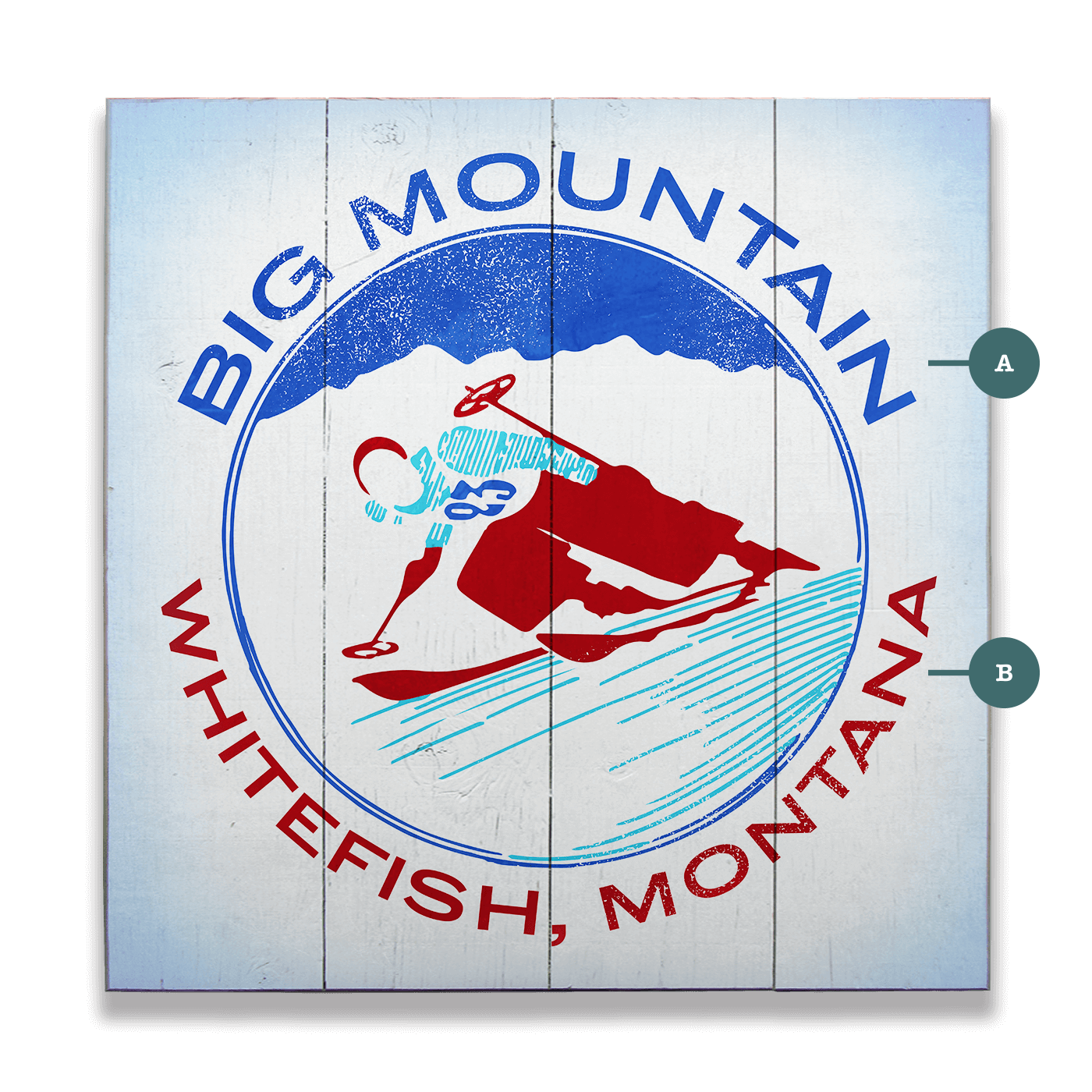 This bold and dynamic artwork celebrates the exhilarating spirit of alpine skiing with its vibrant retro design. Featuring a skier in mid-action framed by a majestic mountain backdrop, it captures the thrill of carving down snowy slopes. The clean lines, patriotic color palette, and vintage typography evoke a timeless charm, perfect for ski enthusiasts and lovers of mountain culture. Whether displayed in a lodge, cabin, or recreational space, this piece brings the energy and excitement of the slopes to life.