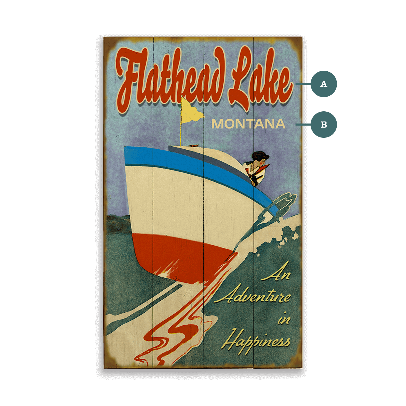 Enjoy complimentary personalization for this piece, meticulously handcrafted by our graphic design team. Specify your desired text for points A and B. To ensure perfection in your custom piece, please verify your text carefully. Missing personalization information will revert to our default design as shown. To remove all text from a field, type "Remove" in that field.