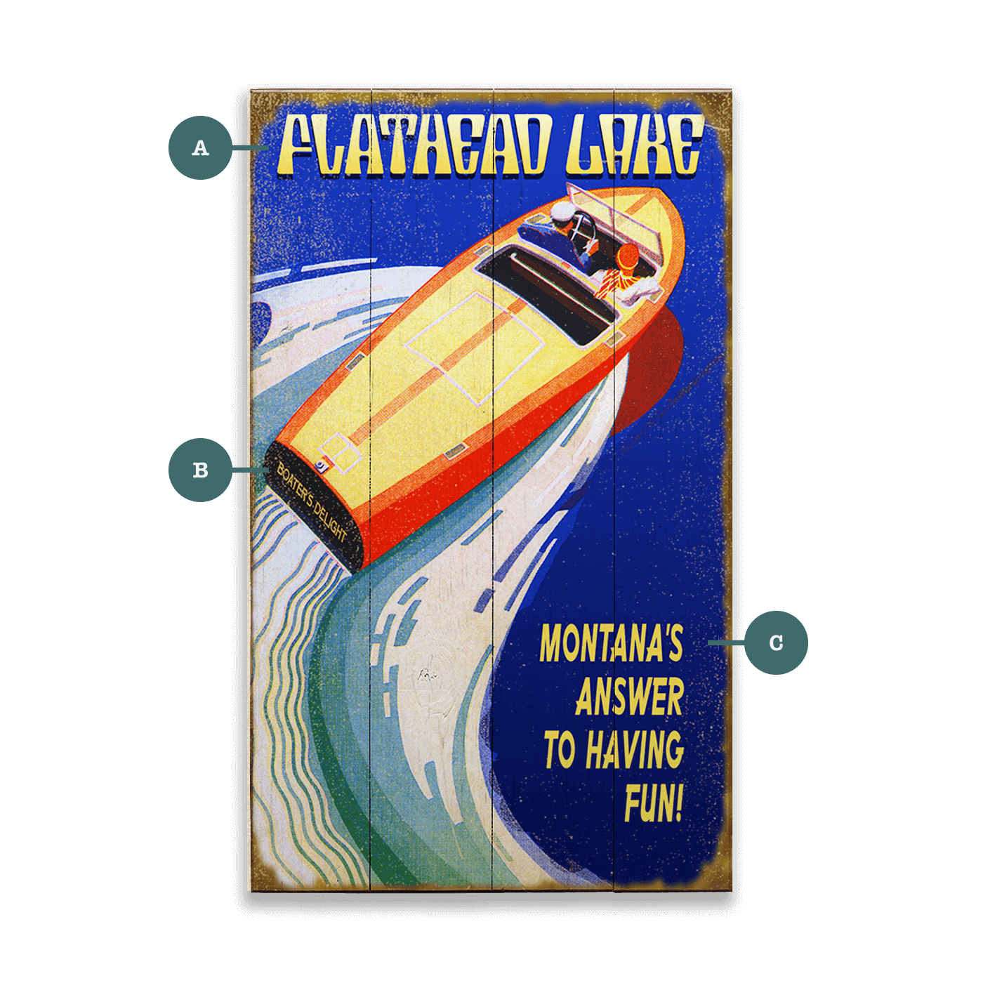 Loyd, who had been dabbling in cartooning and surfing, was encouraged to take an art class taught by Eric Titlebaum, a cartoonist of Playboy Magazine notoriety. With time to tinker during the desolate winters, Laura began asking Loyd to create merchandise for their shop. Recognizing the untapped potential of the skiing crowd, they started designing and producing unique wood and metal signs inspired by vintage ephemera.