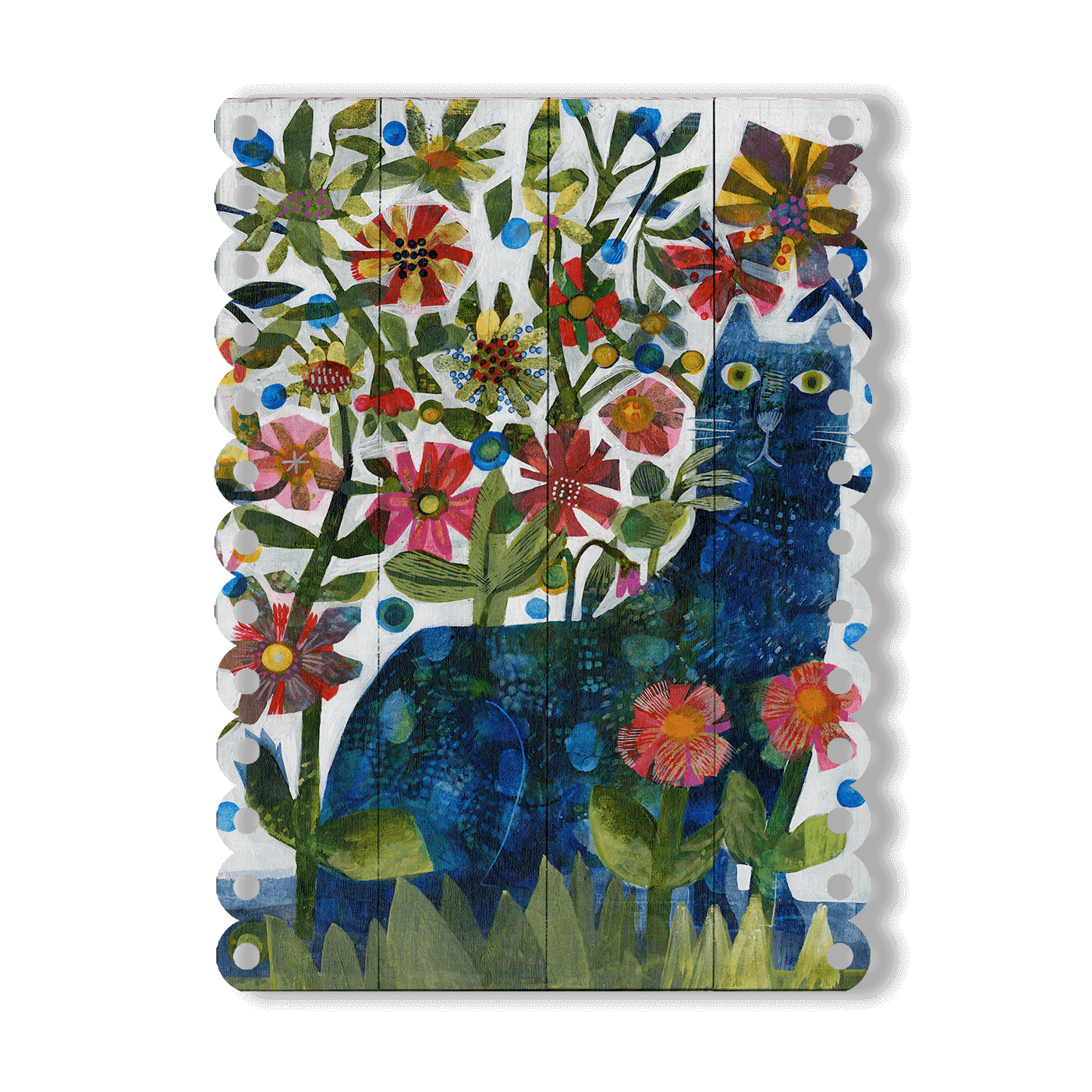 Step into a world where florals burst with life and feline mystery captivates the eye with "BLUE CAT," an innovative box-art by Esté MacLeod. This piece brings the allure of a secret garden to your walls, where a majestic blue cat sits enigmatically among a vibrant flourish of red, yellow, and blue blooms. Crafted with care onto a large sheet of engineered wood, the art showcases Esté's signature blend of real-life inspiration and fantastical creation. "BLUE CAT" is a delightful celebration of Esté MacLeod's fresh, whimsical style and her ability to infuse everyday scenes with an ethereal, dream-like quality.