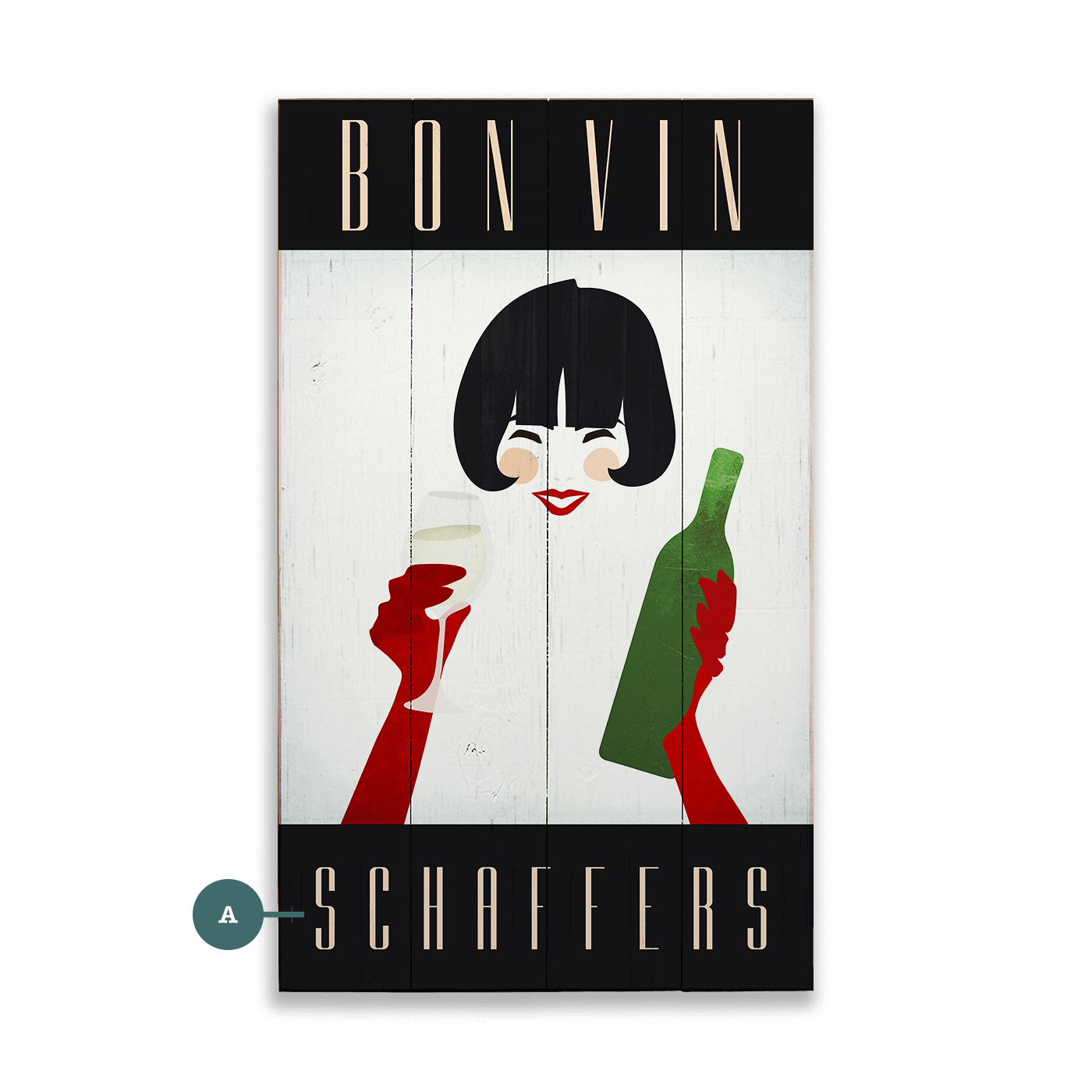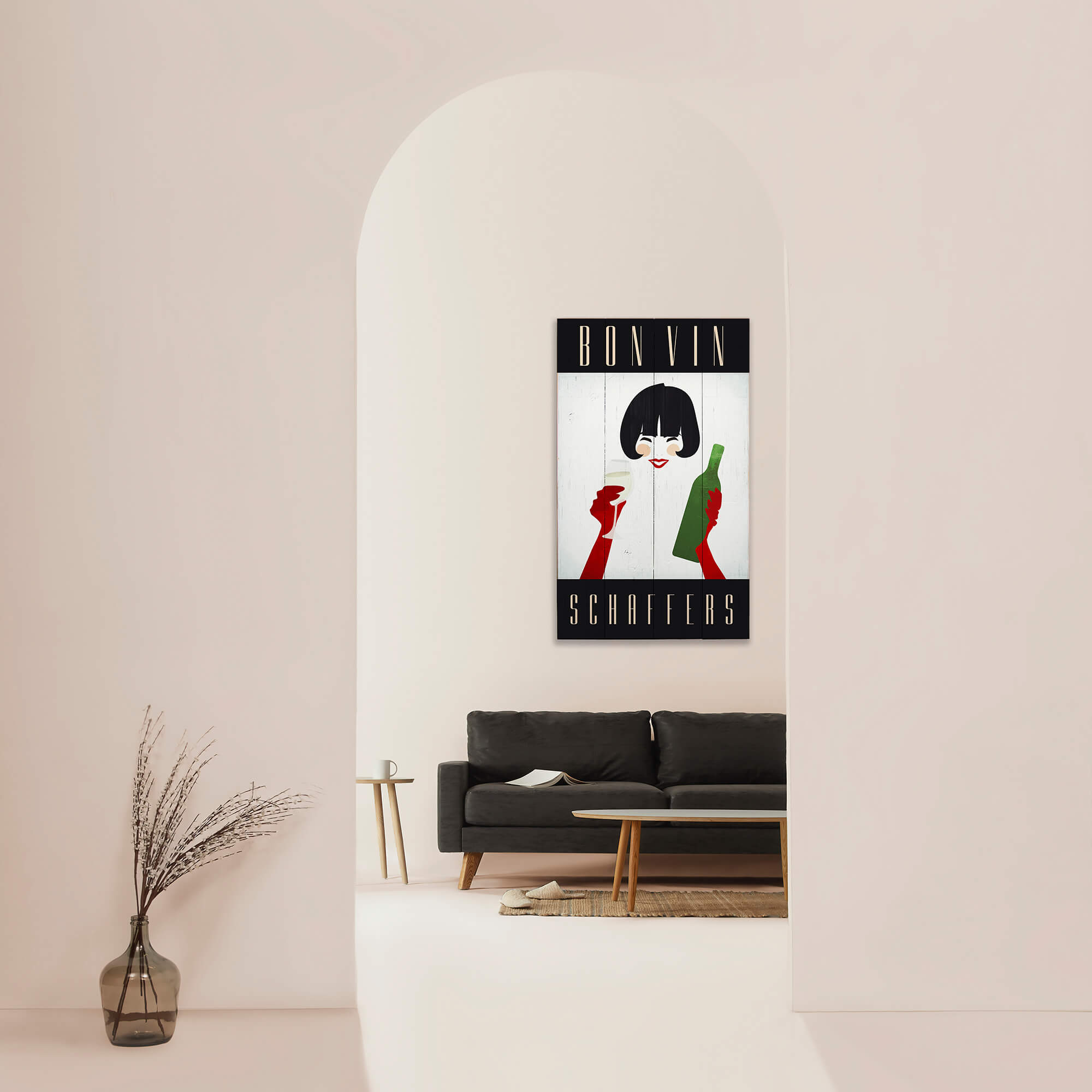 Raise a glass to the elegant and playful 'Bon Vin' artwork, where modern design meets the timeless appeal of wine. Featuring a chic character holding a glass and a bottle, this striking piece uses a bold contrast of red, green, and black to make a sophisticated statement. Perfect for wine bars, dining areas, or as a stylish focal point in any contemporary space.